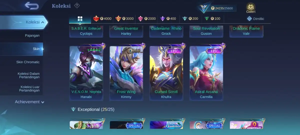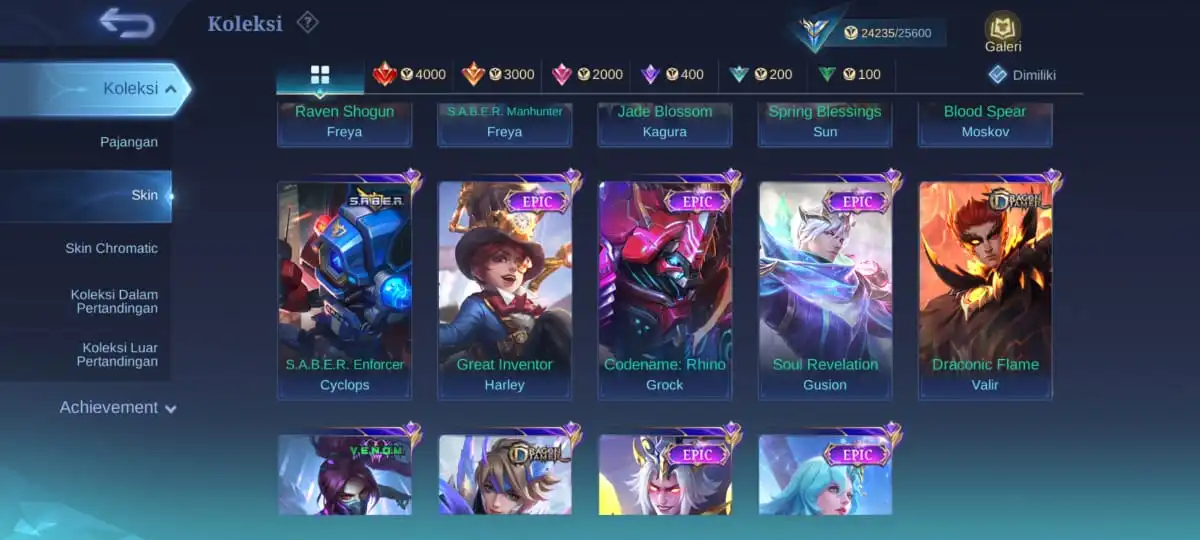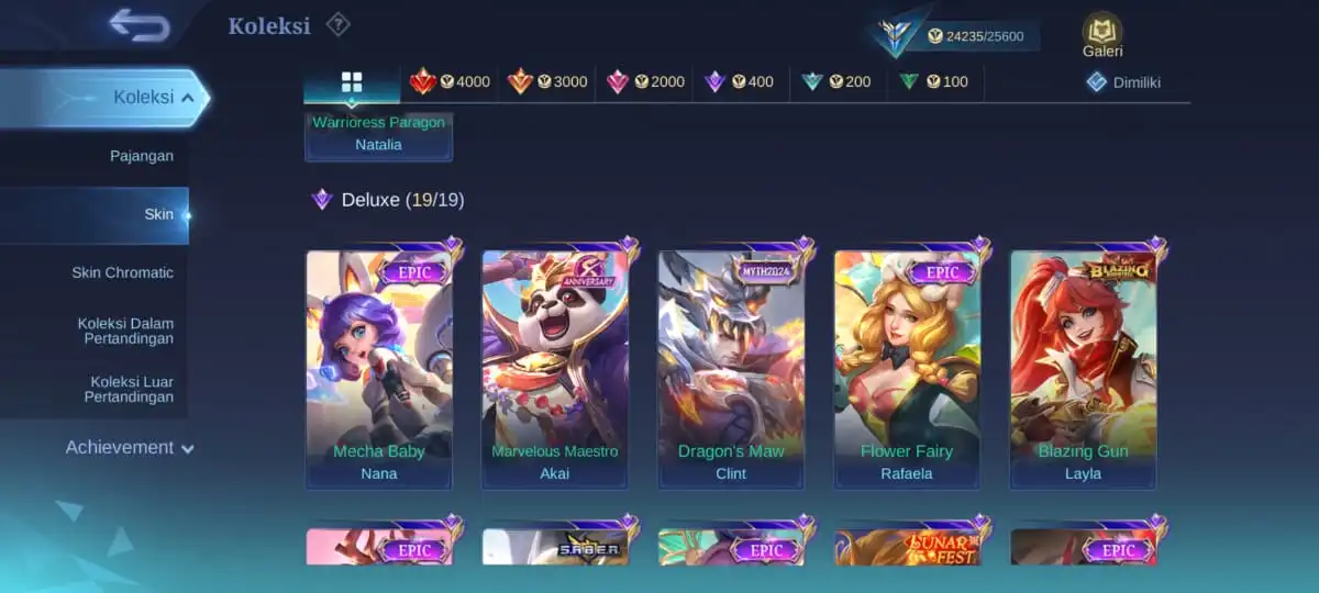 BEST MEGA DEAL✨HERO 82✨SKIN 112✨EMBLEM MAX ✨SUN LUNAR✨CLINT MYTH✨GROCK CODENAME✨CLAUDE MSC✨DRAGON 2x✨S.A.B.E.R 2x✨BLAZING LAYLA✨URANUS RISING ✨MIYA LIMITED✨SAFE ACC✨INSTAN DELIVERY