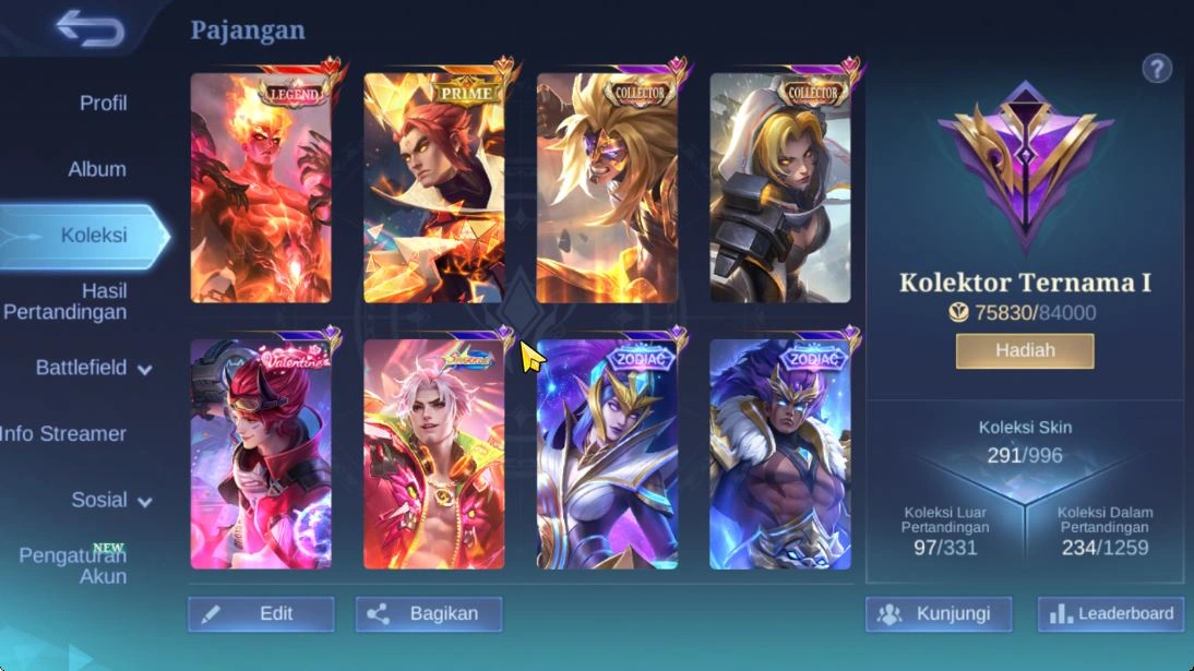 Hero 126 Skin 291 | Legend Valir, Prime YZ, Transformer Roger, 2 Colector (Ntalia,Badang) etc| Check SS (MLBB728)