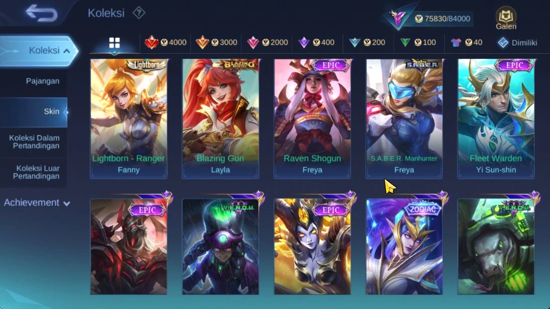 ![Hero 93|Skin 120|MAX Emblem|Prime Granger,SpongB Cyclops,Epic [Khufra,Roger,Kagura,Irithel,Nana],Etc|Take Email|(MLBB2153)](https://cdn.gameboost.com/games/mobile-legends/tiers/sm/epic.webp)