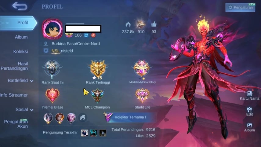 Hero 93|Skin 120|MAX Emblem|Prime Granger,SpongB Cyclops,Epic [Khufra,Roger,Kagura,Irithel,Nana],Etc|Take Email|(MLBB2153)