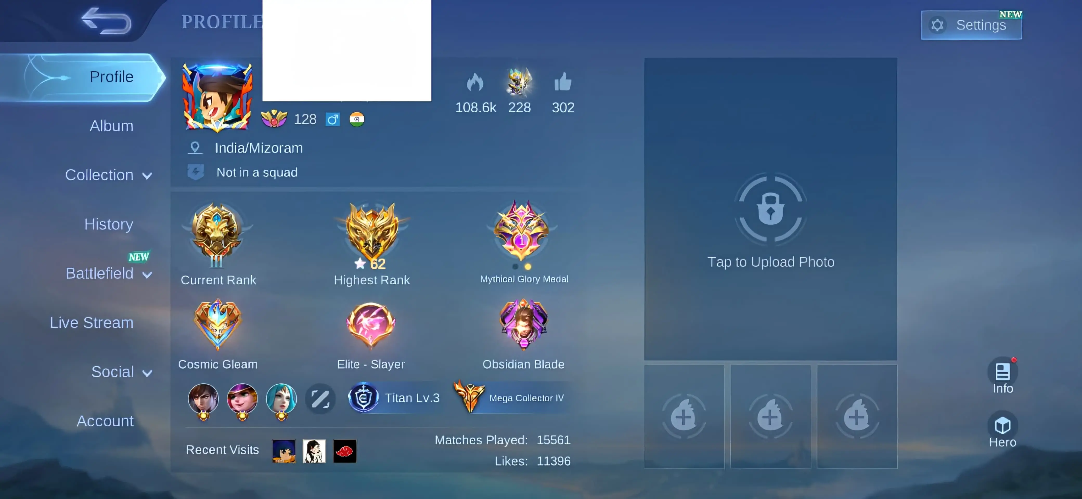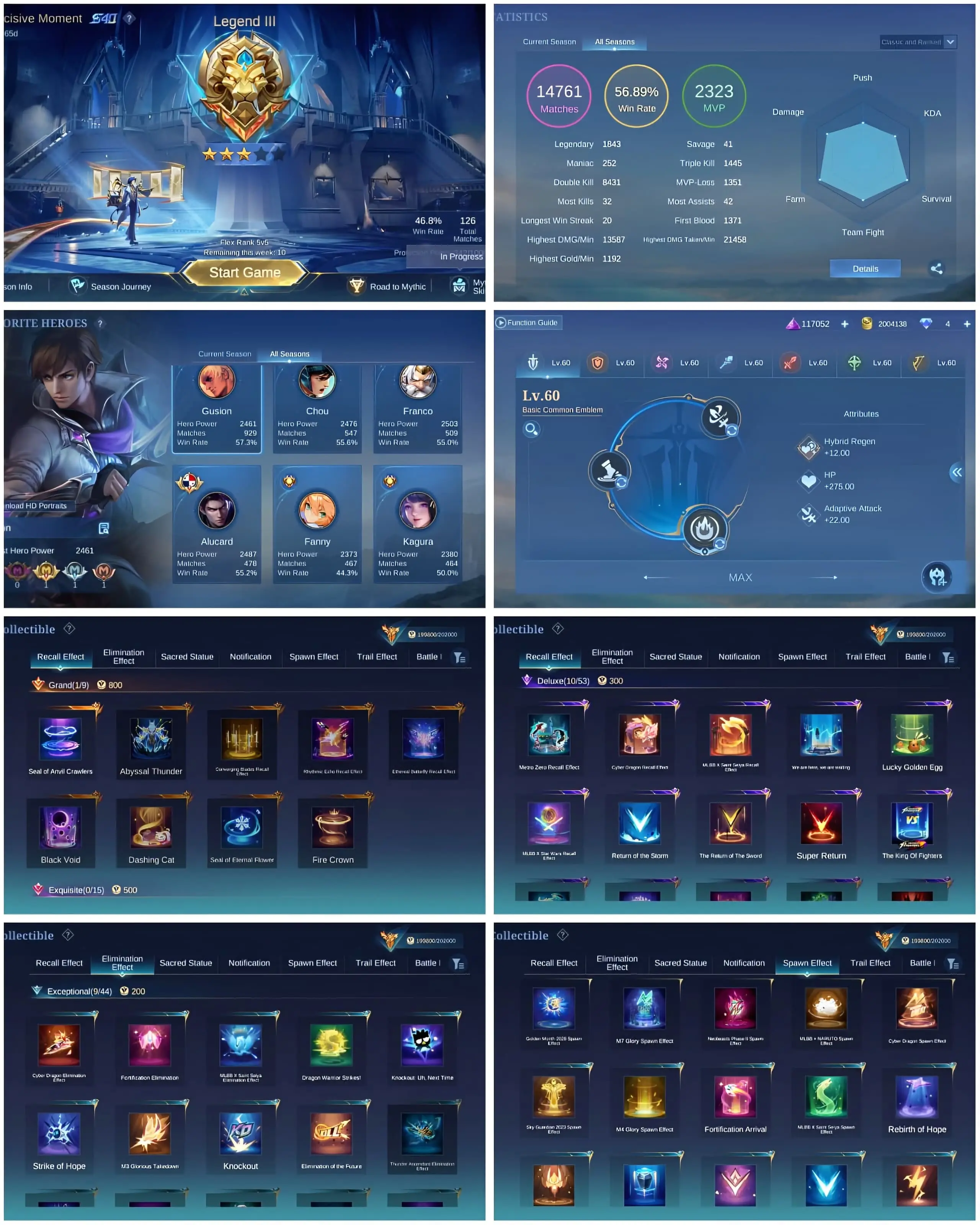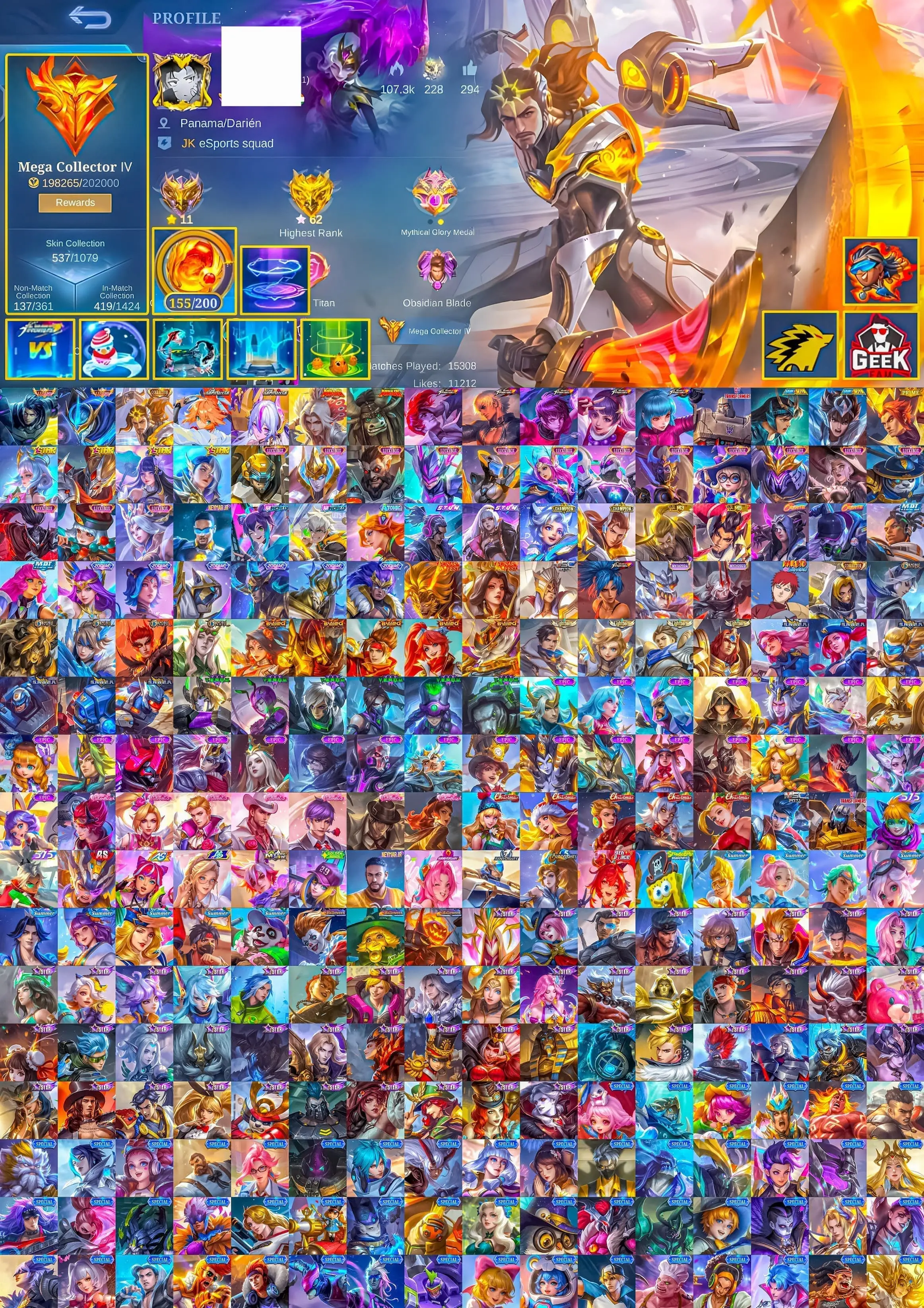 [IOS/ANDROID] CEL LVL 128 | 132 HEROES | 537 SKINS | MEGA 4 | 2 LEGEND ⸱ LAPU COLLECTOR ⸱ KOF CHOU GUSION ⸱ ASPIRANT FANNY VEXANA ⸱ LING LORD SHEN ⸱ 15 LUCKYBOX
