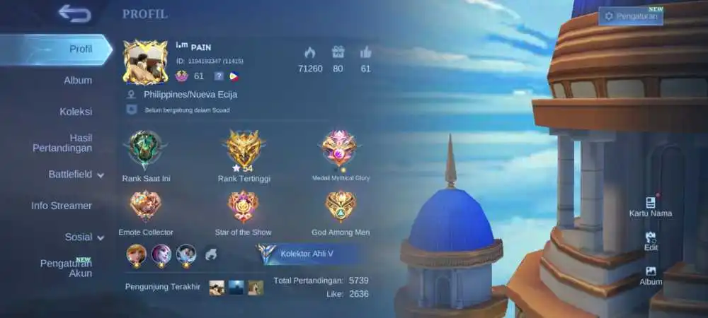 IT 381🔥MOBILE LEGEND🔥6 EMBLEM MAX🍀5 EPIC 🍀2 VENOM🍀1 DRAGON TAMER🍀RANK:EPIC🍀HERO 95🍀SKIN 125(SAFE ACCOUNT)
