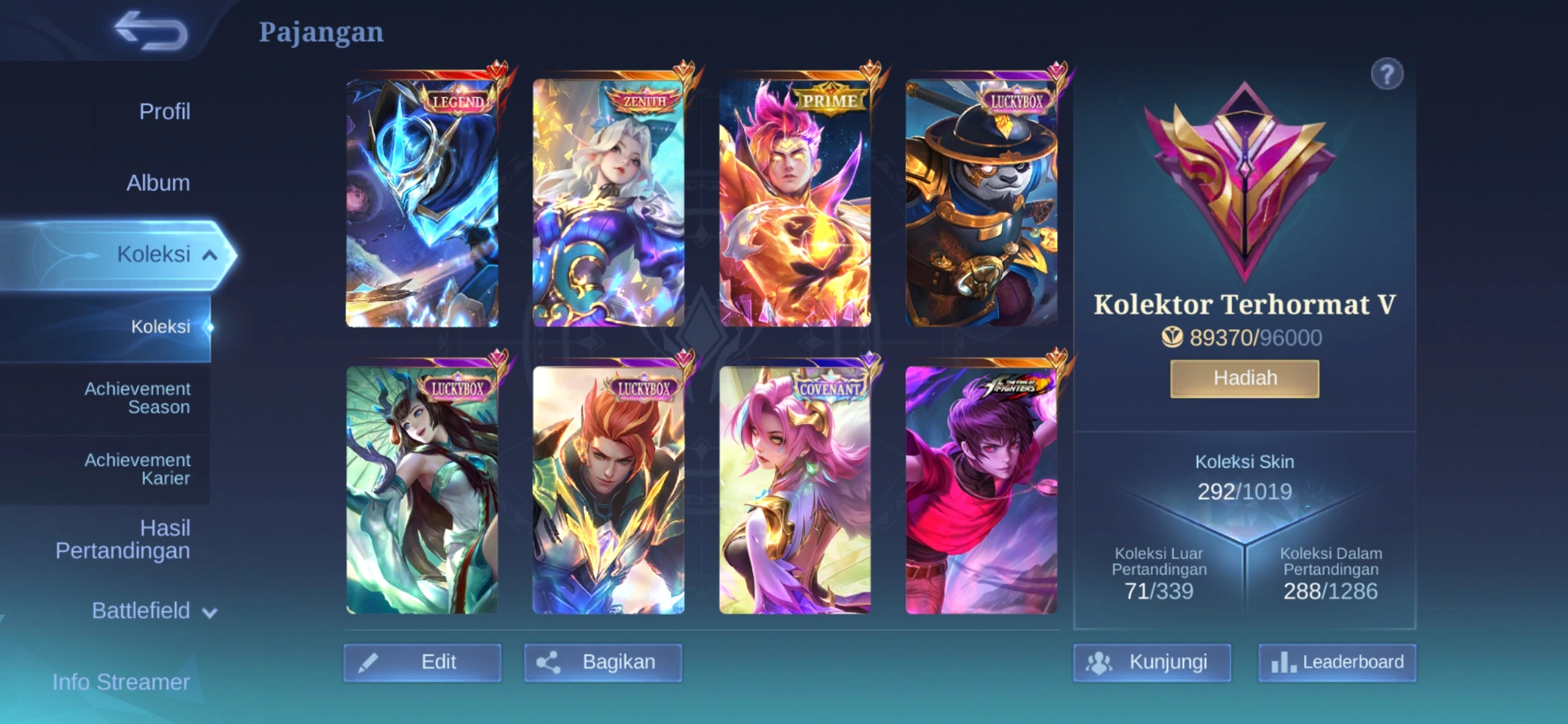 MB875|LV57|HERO 105|SKIN 265|RENOWNED COLLECTOR 3|GUSION LEGEND|DYRROTH KOF|SELENA ZENITH|CLAUDE PRIME|KARINA KOF|KAGURA ANNUAL|KAGURA CLOUDS|AKAI, KAGURA, CLAUDE LUCKYBOX|SELENA, LUNOX, |AURORA ZODIAC|20 EPIC|BADANG SEIYA|VALE GAARA