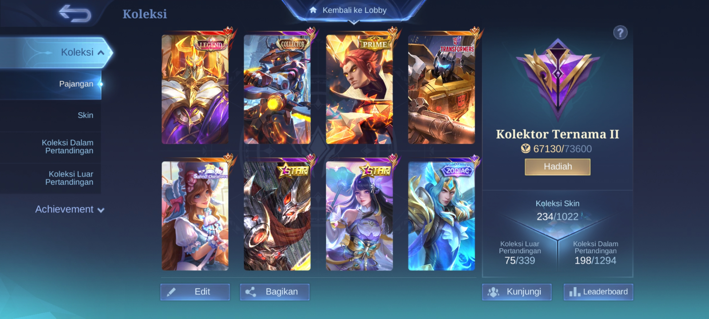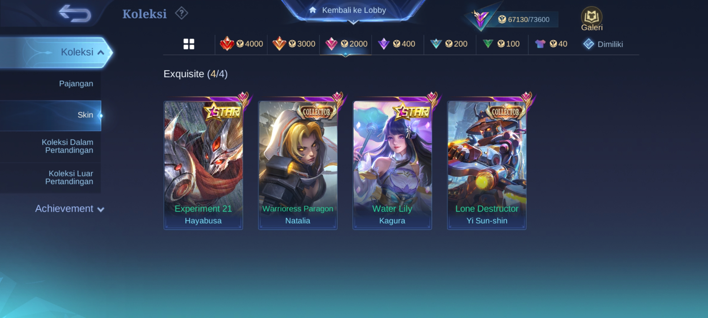 ML-181 Skins 234 [ Legend Johnson ] 2 Collector Yi Shun Shin x Natalia / Sanrio Floryn / Prime Yuzhong / Anual Hayabusa x Kagura / TF Ro