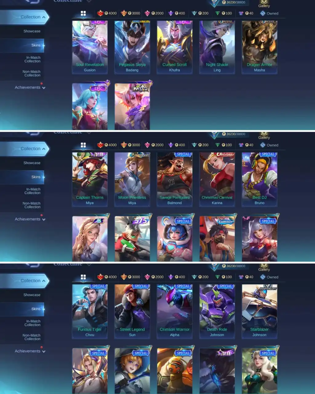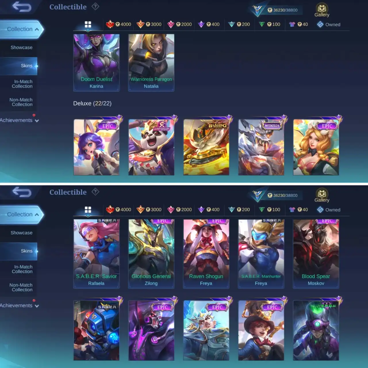 ML306✨HERO 112✨SKIN 166✨EMBLEM MAX✨LUCKYBOX KARINA✨CC NATALIA✨SAINT BADANG✨EPIC 11✨SABER 3✨DT 2✨STAR 3✨SPECIAL 18✨MSC 2