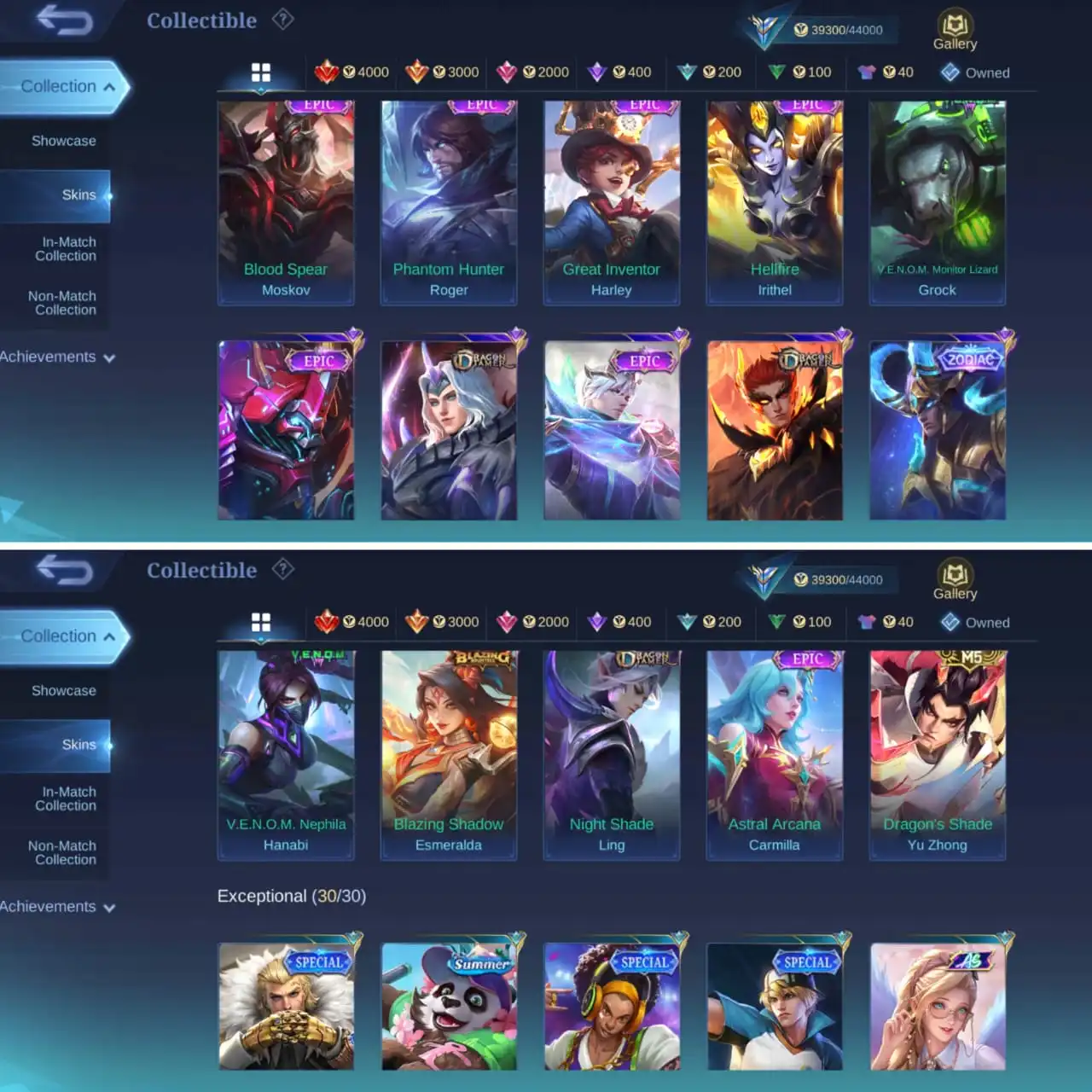 ML309✨HERO 82✨SKIN 158✨EMBLEM MAX✨PRIME YUZHONG✨KOF KARINA✨ZODIAC MARTIS✨LIGHBORN 3✨EPIC 9✨DT 3✨VENOM 2✨SABER 2✨STAR 3✨SPECIAL 19✨SUMMER 2✨M5 YUZHONG✨VALENTINE FANNY