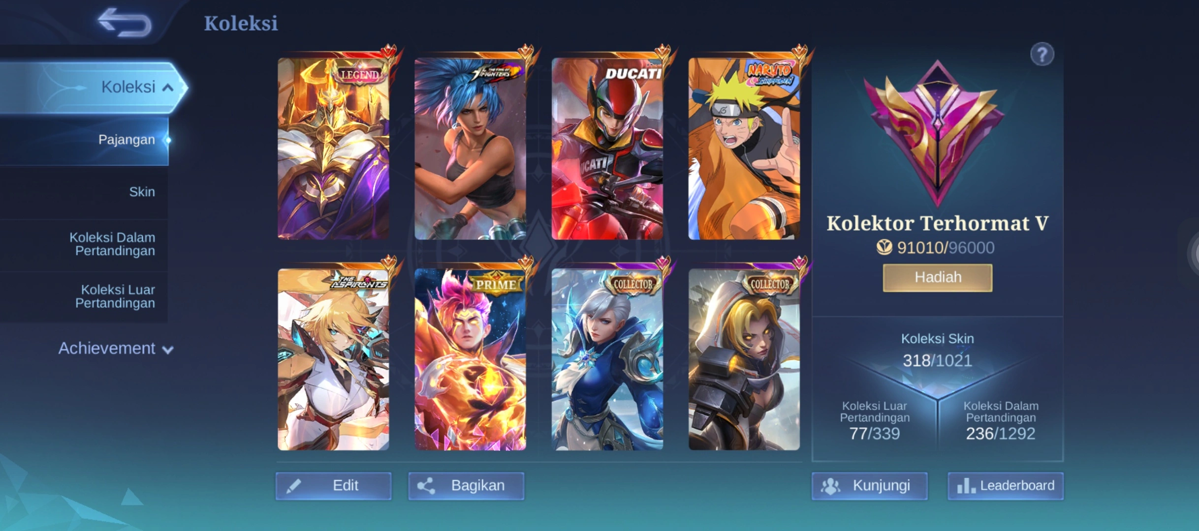 MM294|Lv67|318Skin|EXALTEDCOLLECTORV|HighWR|Legend Johnson|DUCATI Irithel|ASPIRANTS Lesley|NARUTO Lukas|PRIME Claude|2COLLECTOR
