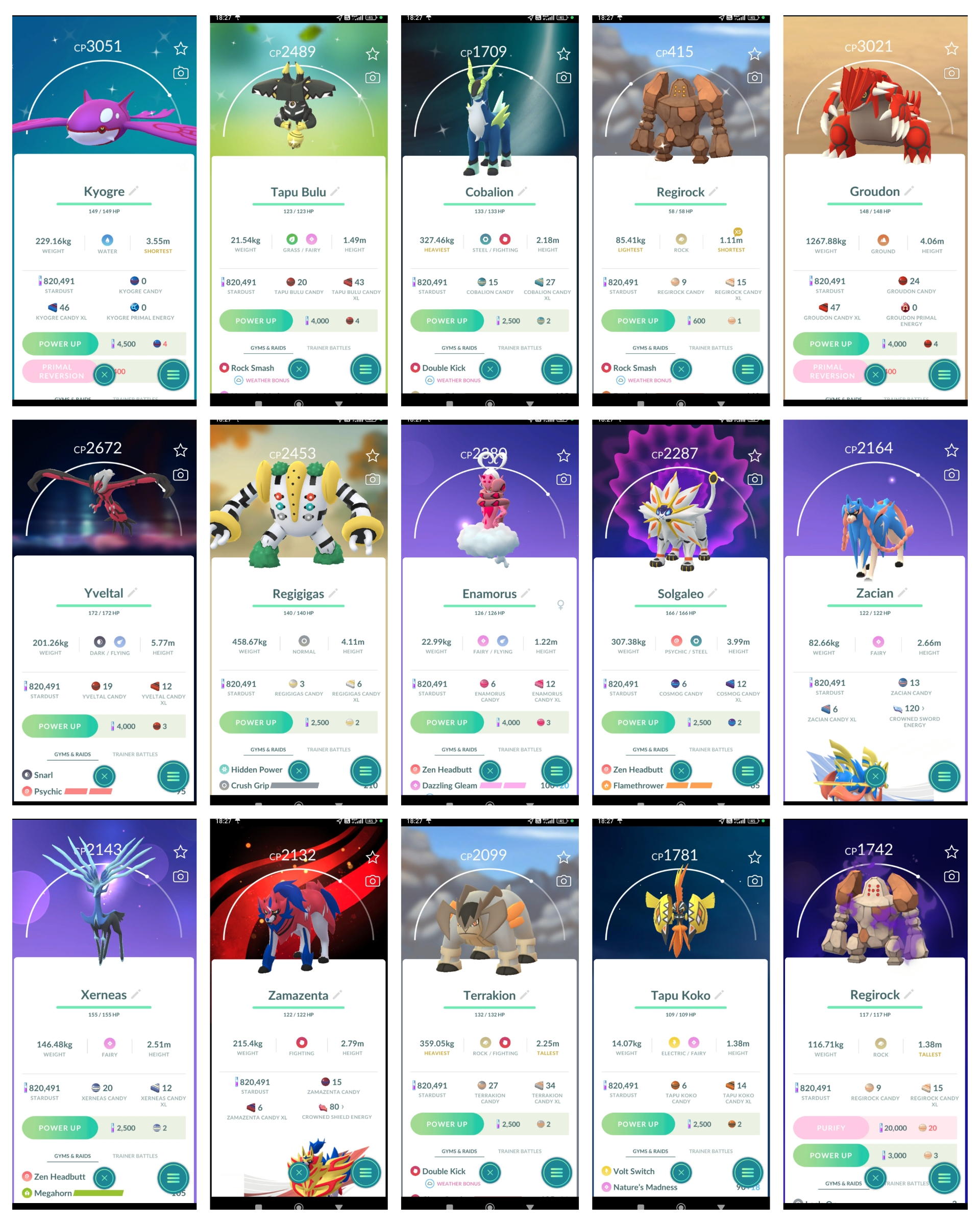 e420🔥Shiny: Kyogre 3K, 2 Tapu Bulu, Cobalion, Regirock🔥Legendary: 57🔥Shiny: 51🔥Groudon 3K🔥Solgaleo🔥Regigigas🔥Enamorus🔥Terrakion🔥Yveltal, Xerneas