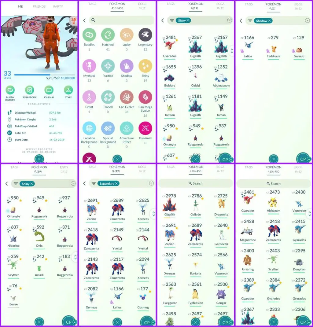 LEVEL 33(MYSTIC)🔥410/450 Pokemon🔥19 Shiny🔥12 Legendary🔥Name Change Available🔥Instant Delivery