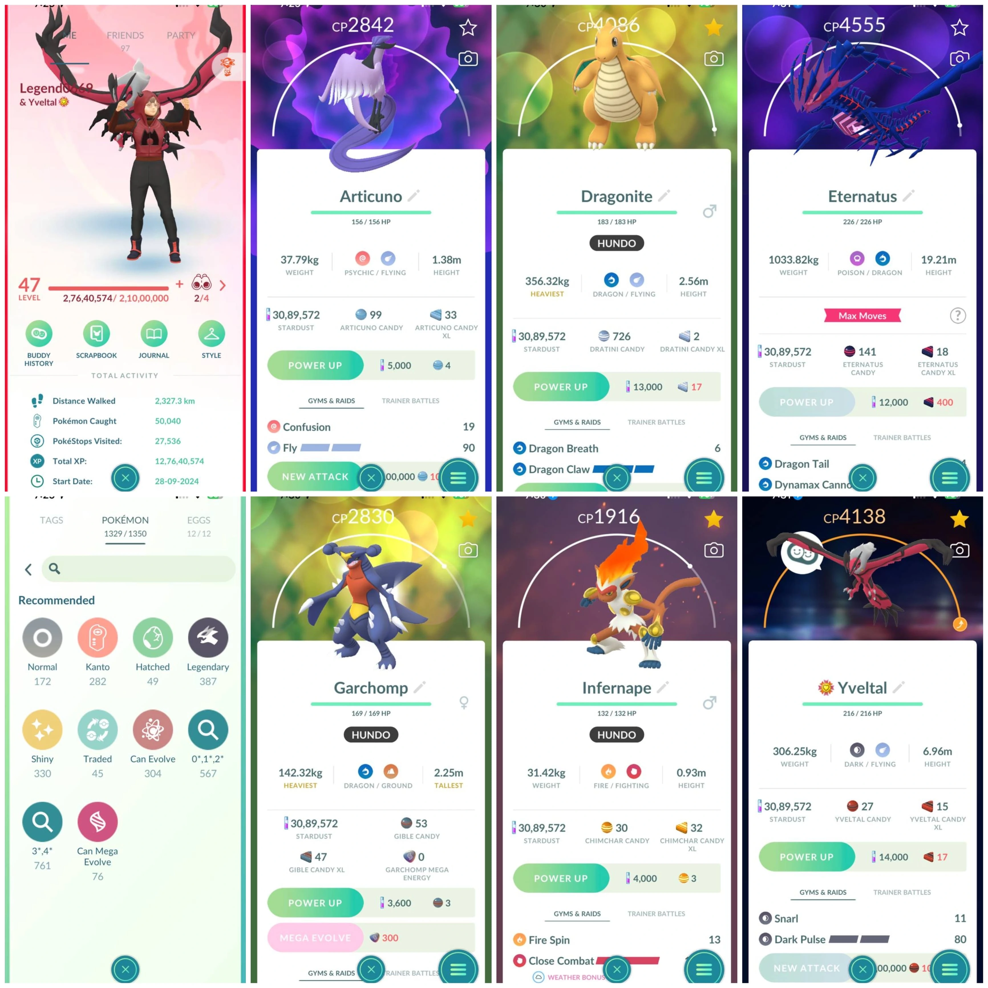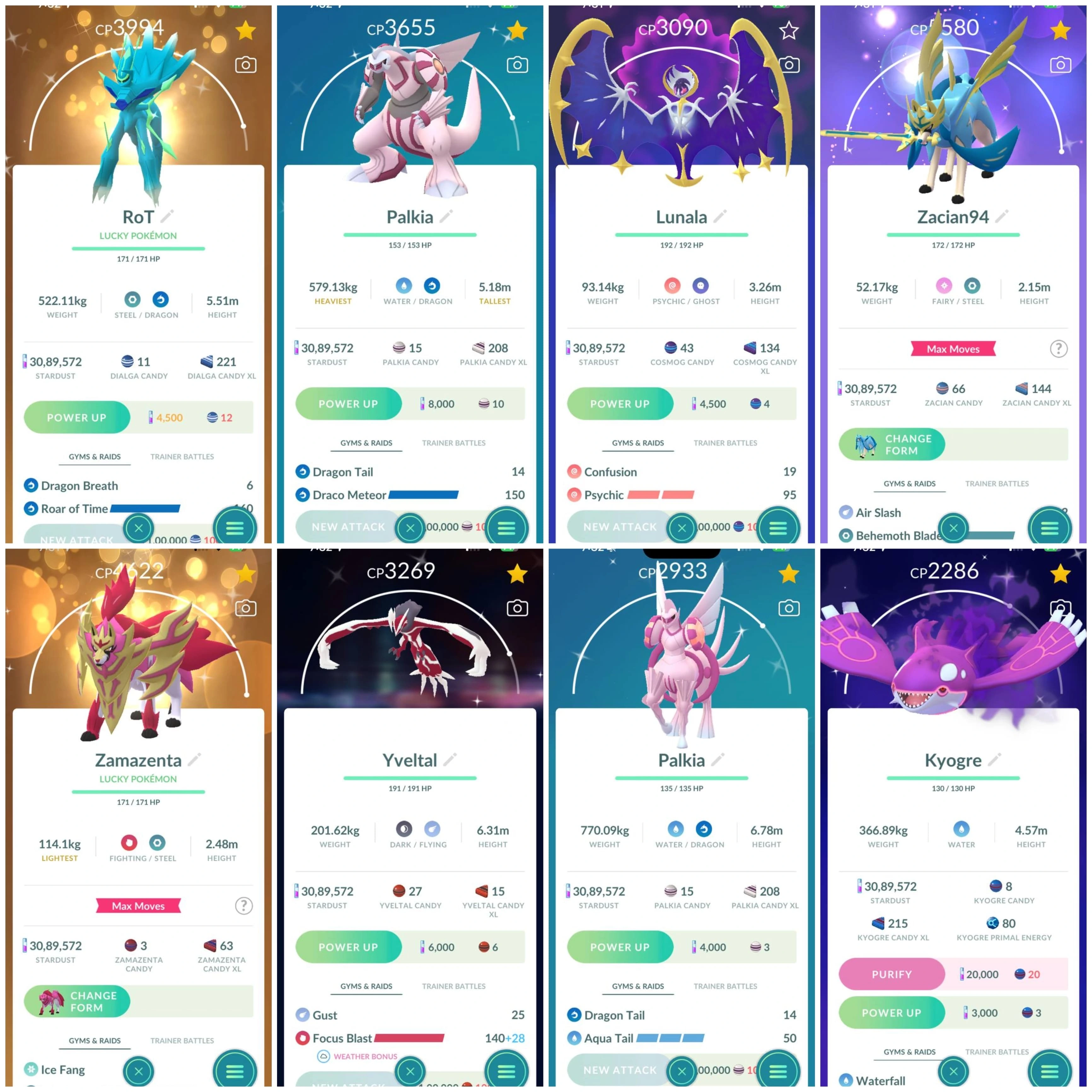 🚨RARE FLEX(LVL47)⭐387 LEGENDS✨330 SHINY(22 SL’s)👑ETERNATUS CP4555+SHINY CROWN ZACIAN 5580CP❄️GALARIAN ARTICUNO⚡LUCKY SHINY DIALGA(ROT)+ZAMAZENTA🌟73 HUNDOS🤩112 DMAX(42LEGENDS)+67 GMAX 🎭GO WILD TICKET 🎫 SHADOW KYOGRE+GROUDON🔥3M+ STARDUST