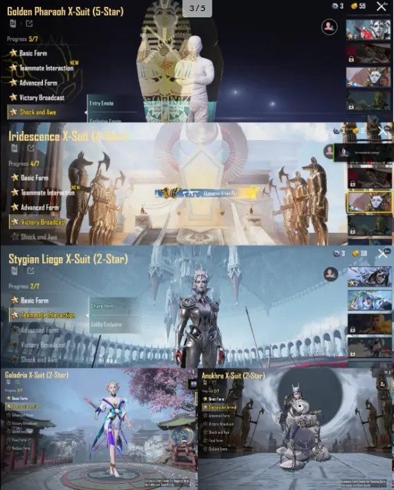 All Rare Emotes💫 | 5x Xsuits | Pharoh 5🌟 Iridescene 4🌟 | 41x Upgraded Guns | 15x Kill Msg | 2x Sports Cars | 118 Rare Mythics | Faces Hairs Pony Unlock