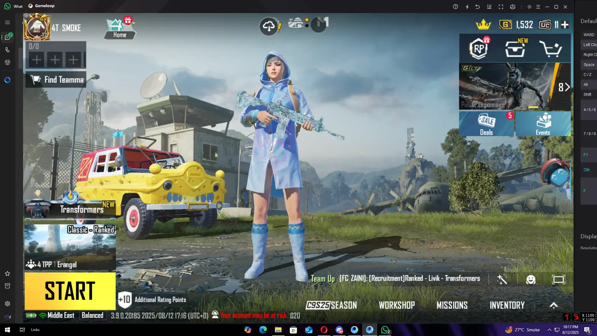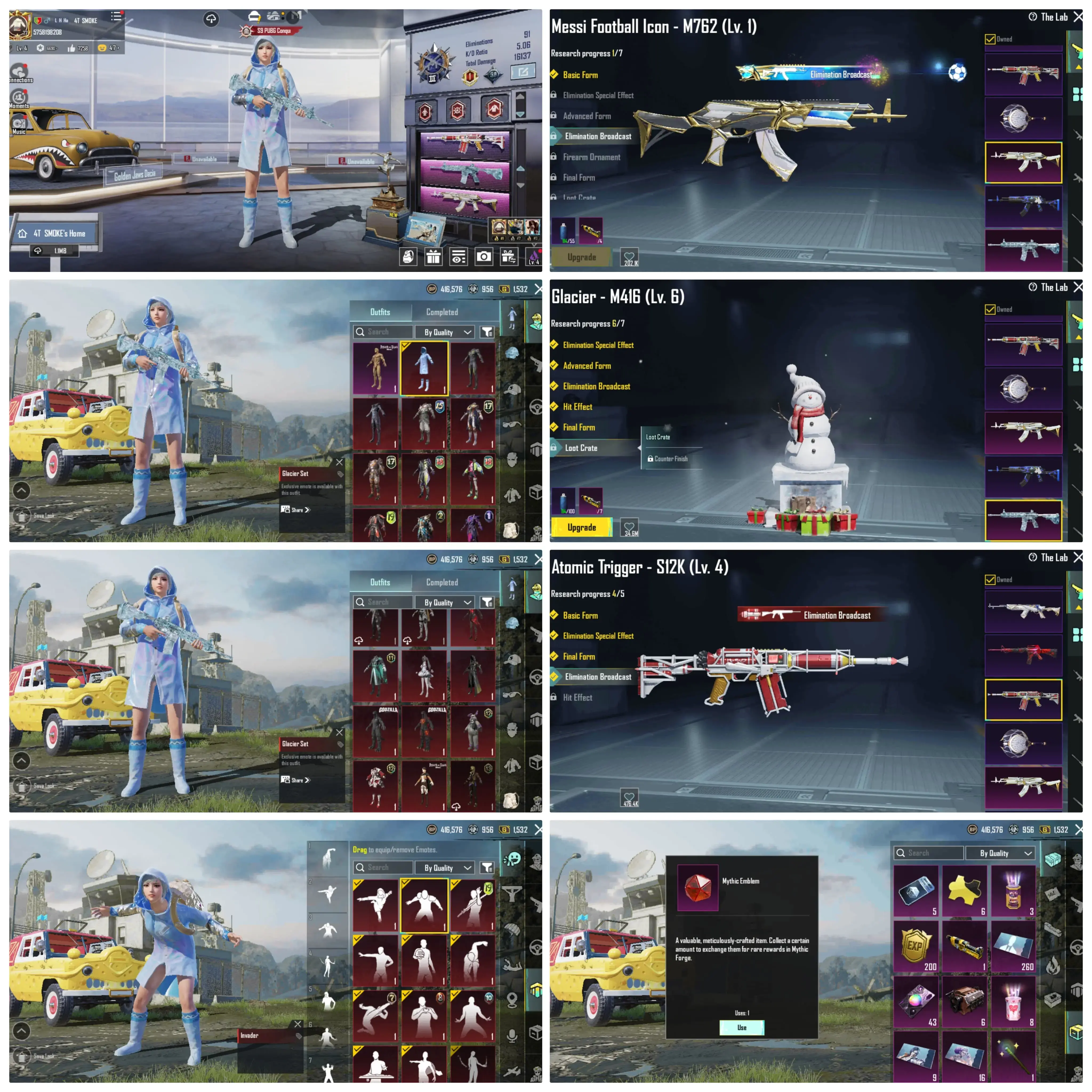 🏆 Level 77 Elite Account | 💎 78 Mythics | ⛑ Glacier Helmet + Conquer Frame | 🔫 M416 Glacier Lv.6 + 10 Gun Labs