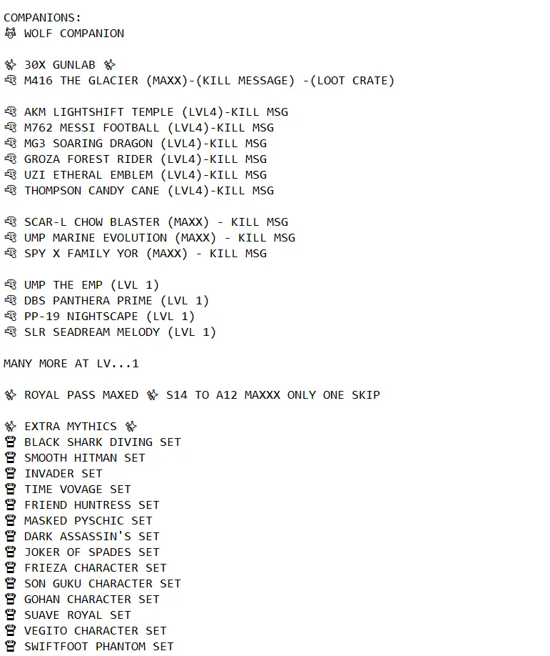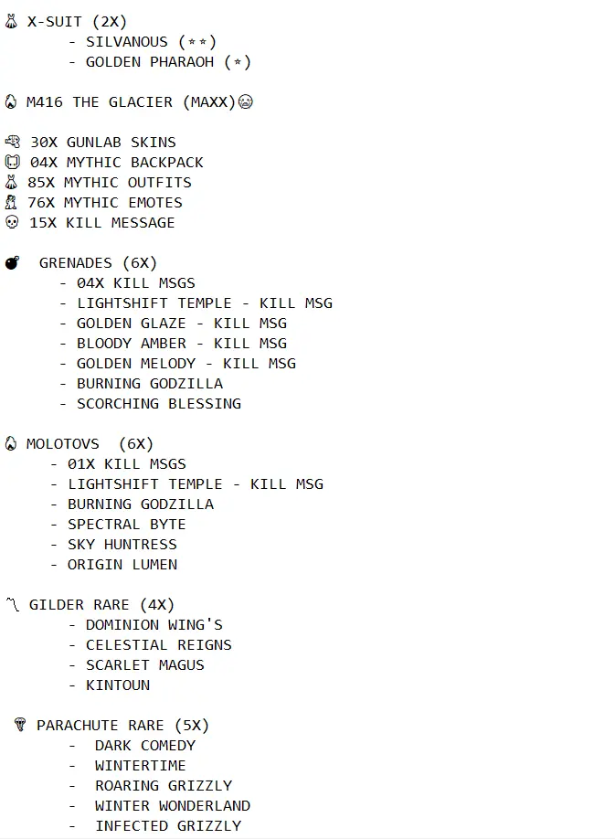 OLD ACC LVL 83 ๐ฎ 2 X SUITS ๐ (PHARAOH โญ + SILVANUS โญโญ) ๐ซ M416 GLACIER MAXX ๐ฆ LOOT CRATE ๐ 3x CONQUEROR ๐ฅ AKM LIGHTSHIFT TEMPLE ๐ฅ