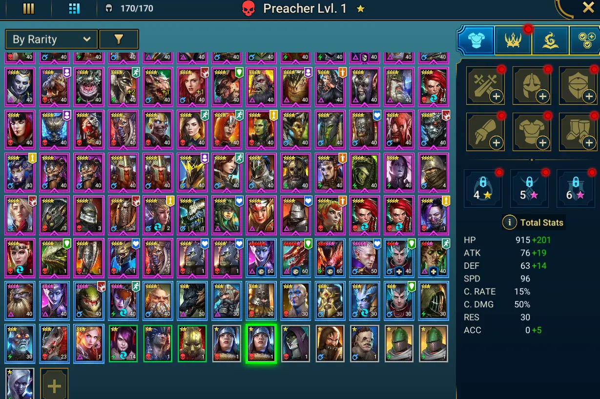 🟠 2 Myth ⸱ Nais the Shadowthief + Embrys 🟠 33 LEG 🟠 Elva 6 RED 🟠 Acrizia + Vault Keeper Wixwell 🟠 Trunda + Mithrala + Arbiter + Kymar + Nice Farm Hard 🟠 Farm CB