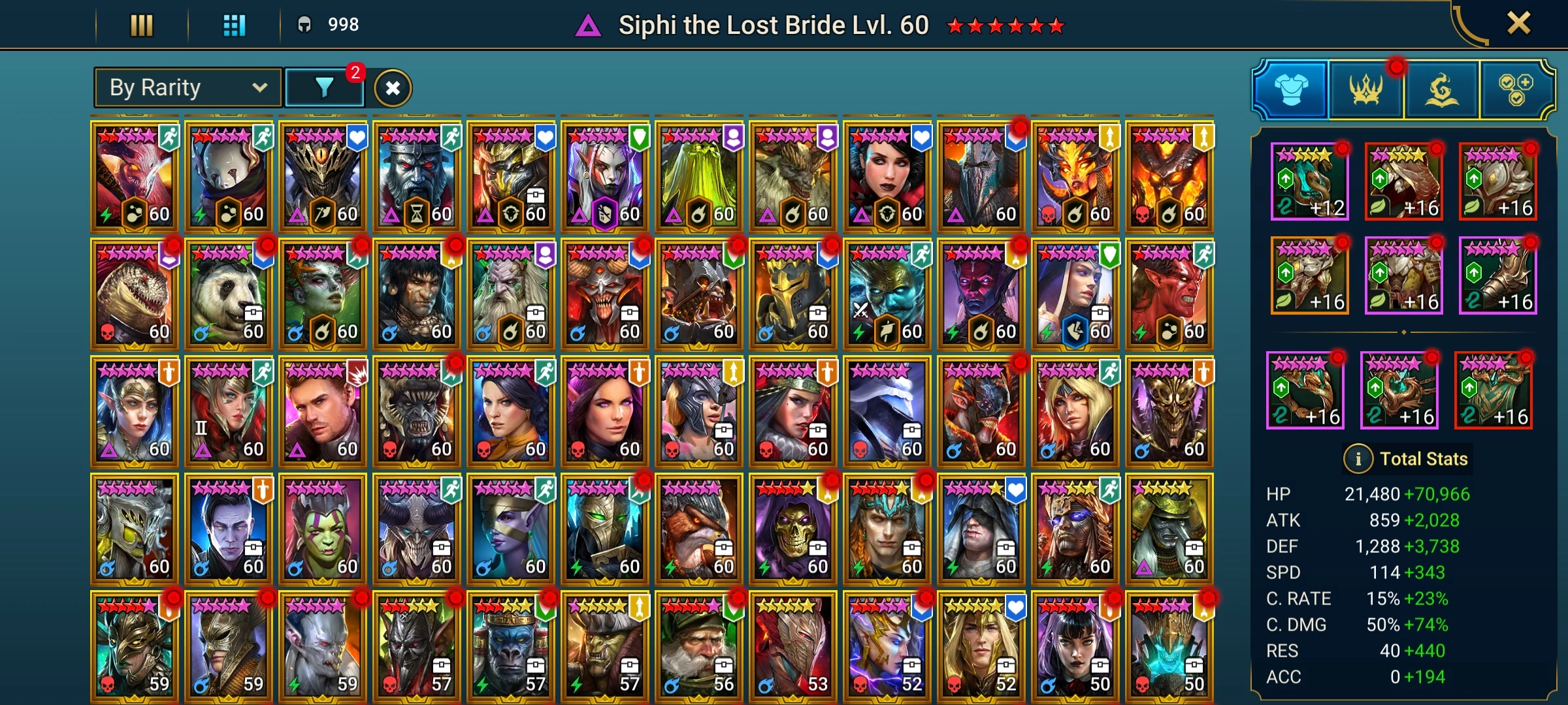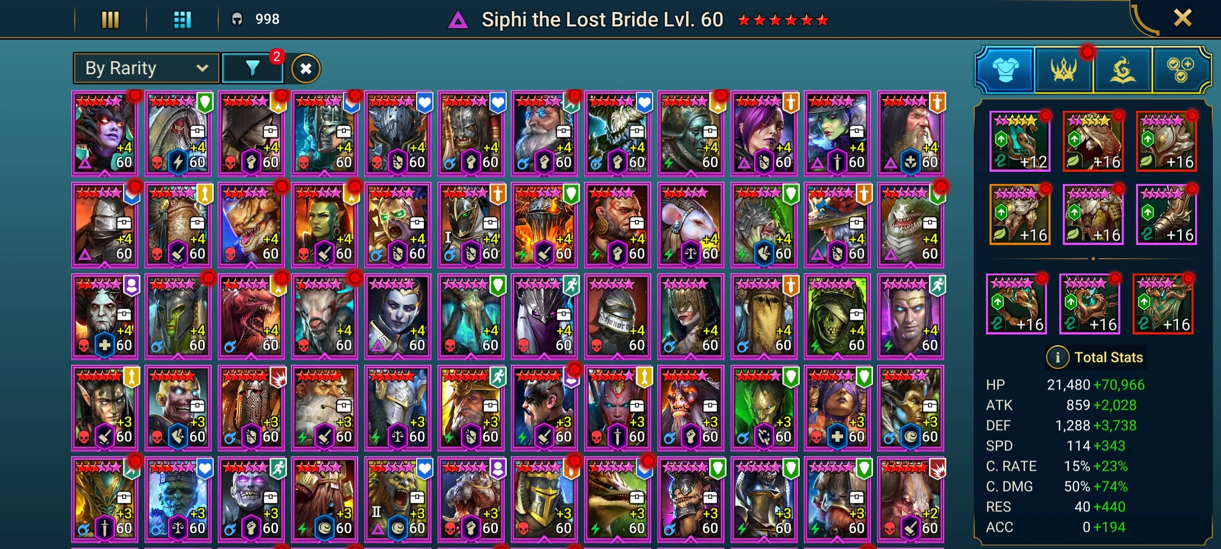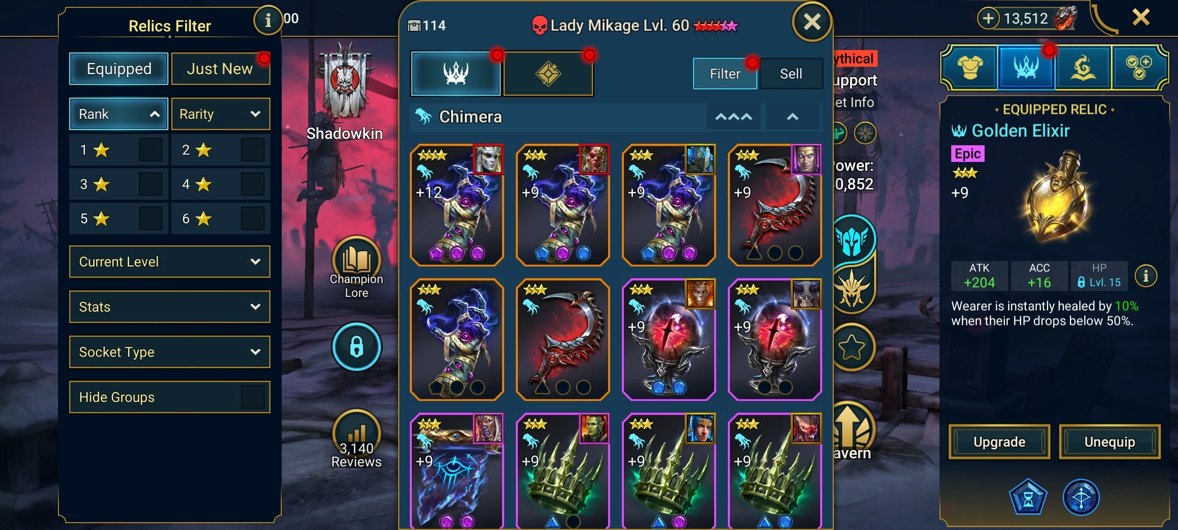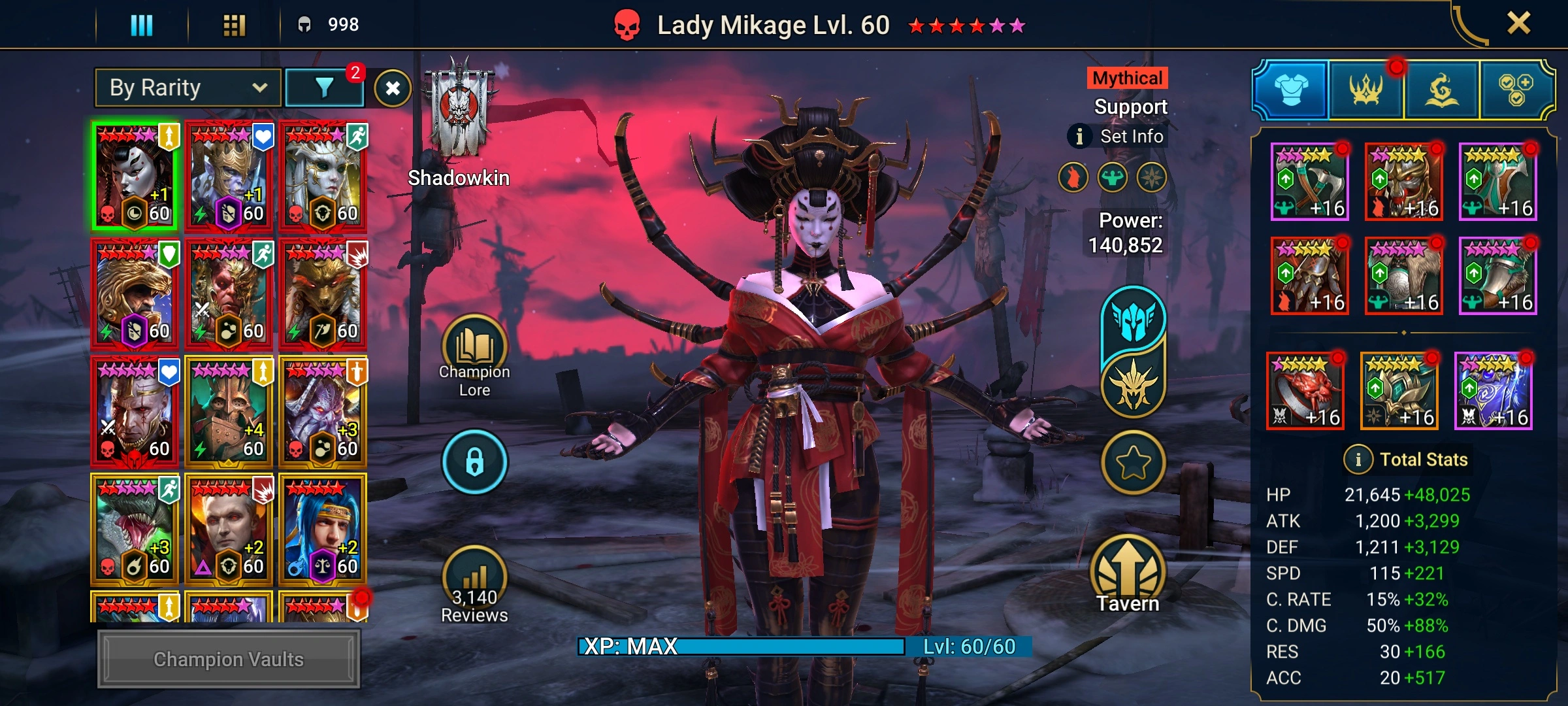 [9 Mythical][31.67M] Lady Mikage+1,Arbais,Gharol+1,Androc,Mezomel... + 355 LEG (Marius+1(6*),Narses(5*)+Ankora(5*),Siphi(6*) 457+Rotos(5*)/x2,Acrizia(6*)/x2+Gnut(5*),Harima+1(6*),Teox,Vulkanos(6*)/x2,Ninja+2(6*)...) + 1k UNM + 1k NM HYDRA + 1k UNM Chimera