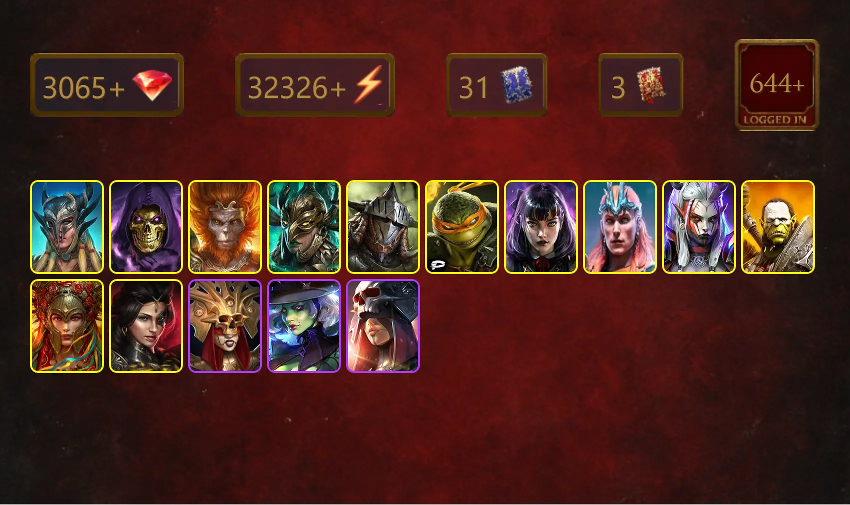 [STARTER]Marichka+Granyt Doorkeep+Scyl+Skeletor+Wukong+Leminisi the Gold-Wing+Rathalos+Michelangelo+Alice+Loki+Visix+32Epics