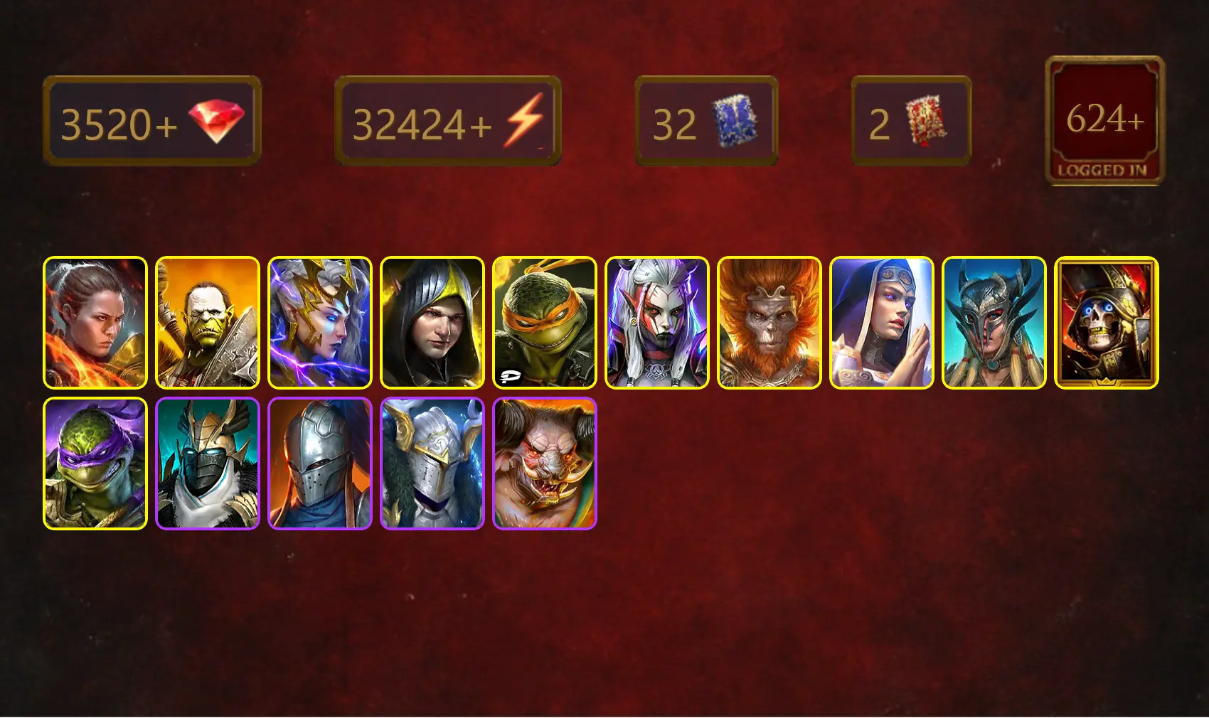[STARTER]Martyr+Donatello+Ronda+Artak+Deliana+Aleksandr+Michelangelo+Visix+Wukong+Scyl+Deathknight+Vergis+Pitiless One+22Epics