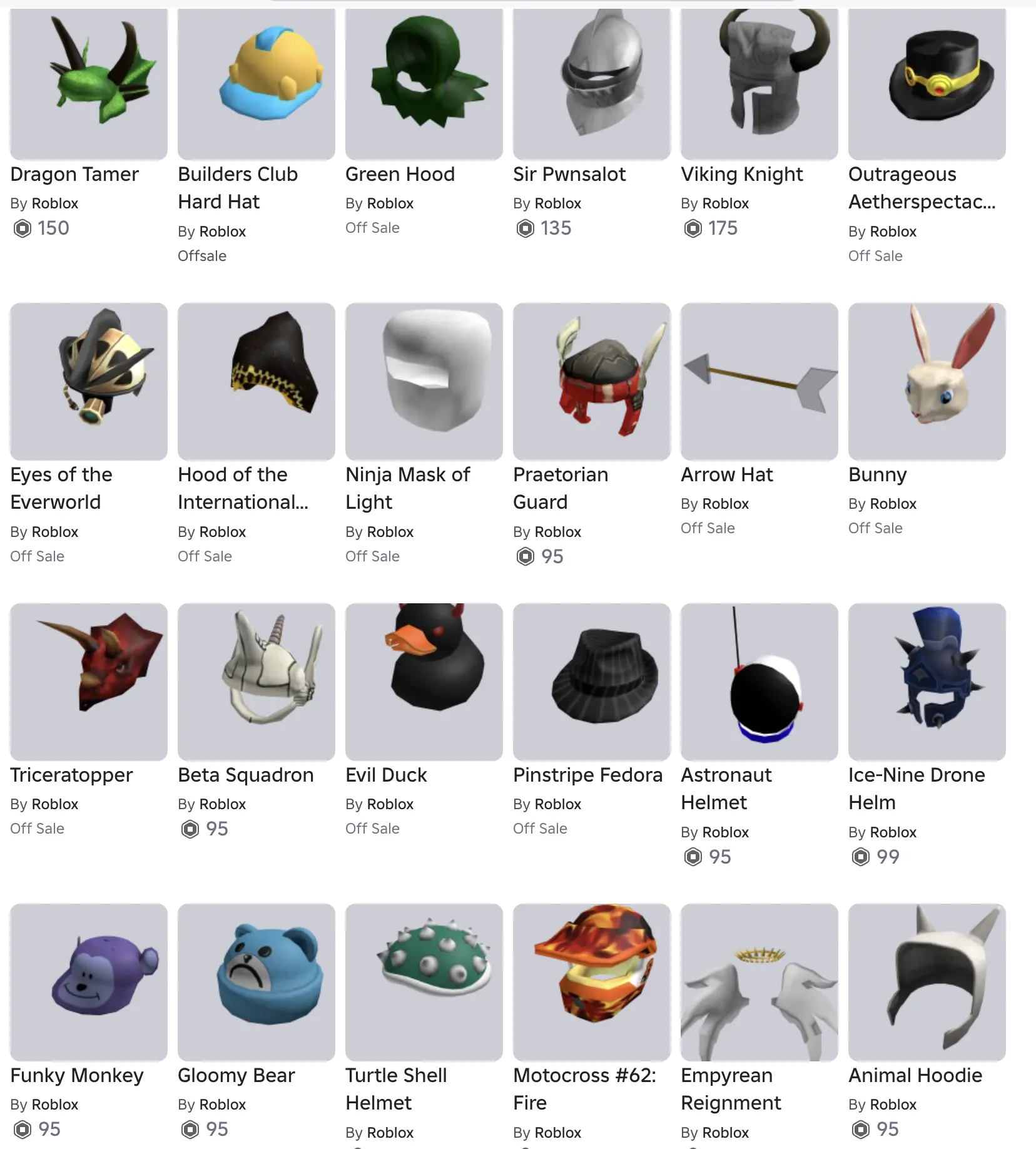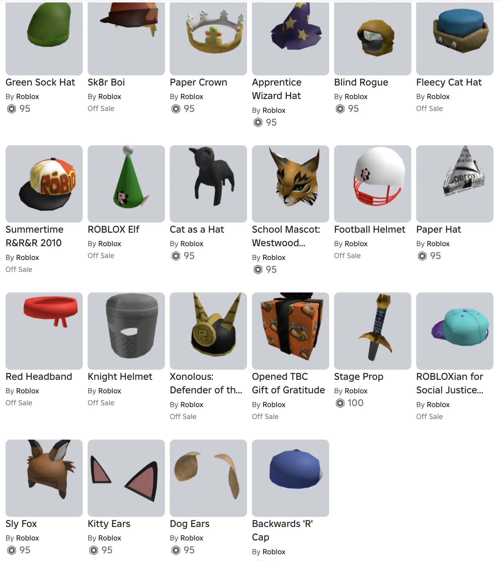 ROBLOX 2010 Account 🔥 55+ Offsales & Limiteds 🔥 Diamond Head + Hex Head + Green Hood + Pinstripe Fedora + Evil Duck + Arrow Hat + Bunny + Knight Helmet + Xonolous: Defender of the Scorned + Knight Helmet | 4.8K+ Robux SPENT | Email Access ✅