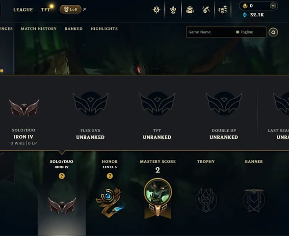 ⚫ NA | Iron IV – 0W–5L (0% WR / Out of Placements / Low MMR / Honor Lvl 3) | 💰30,000 BE | 🧙♂️20 Champs | ⚡Instant Delivery | 🔒 Unverified