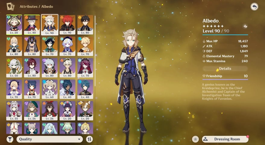 NA AR50 | 5 stars*10 ALBEDO | CYNO | ZHONGLI | VENTI | NAHIDA | LYNEY | DILUC | JEAN | QIQI | SKYWARD PRIDE + lots of 4* characters and weapons