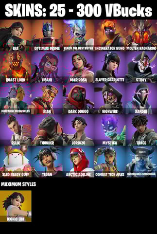 ⭐ [PC/PSN/XBOX/NINTENDO/MOBILE] 25 SKINS | SLAYER CHARLOTTE | HIGHWIRE | DARK DOGGO | XANDER | STRAY | TRACE | OPTIMUS PRIME | INCINERATOR KUNO | TEGAN | 300 VBUCKS | EMAIL