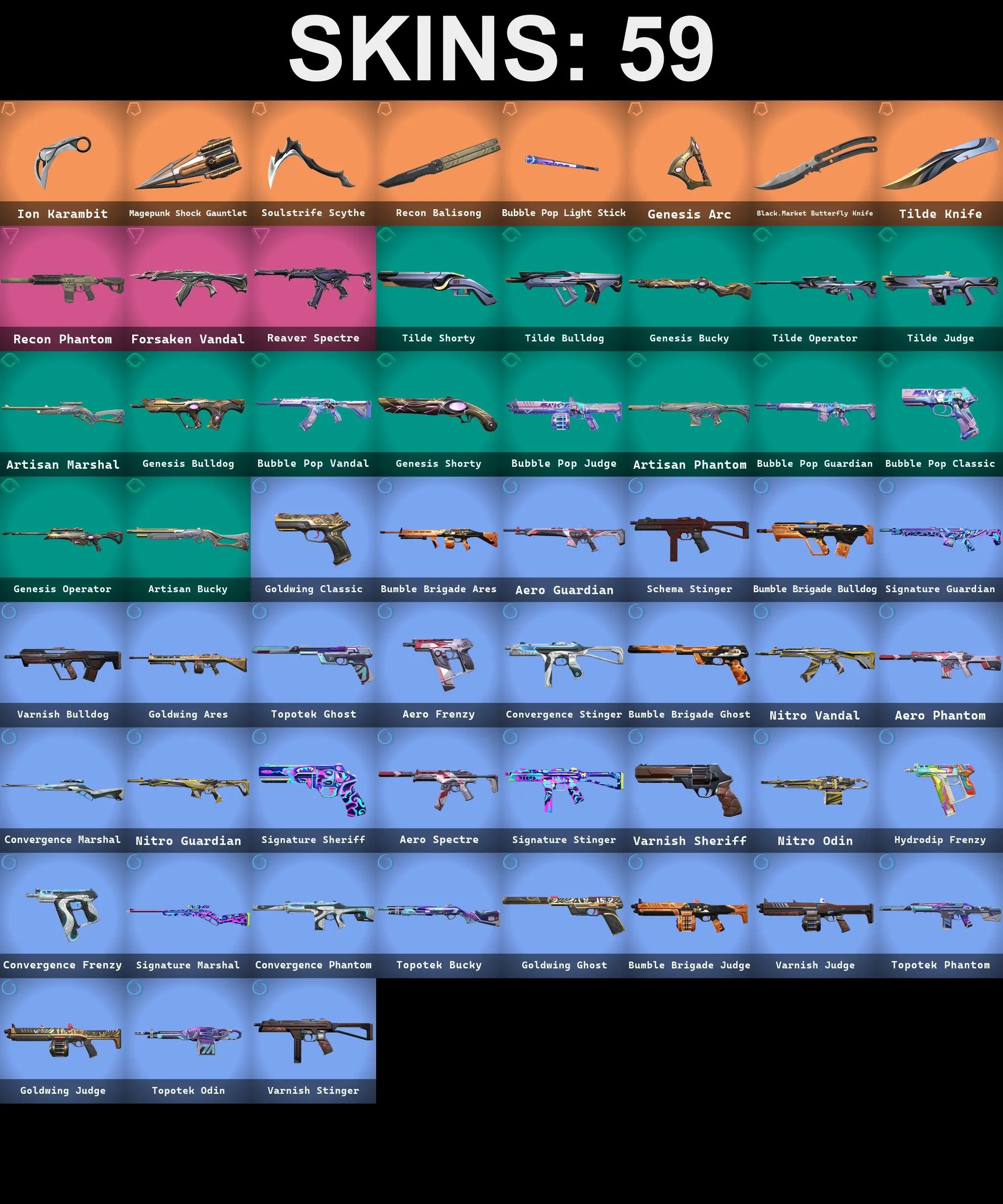 ❤️ 59 SKINS ❤️ 8 KNIFE ❤️ MAGEPUNK SHOCK GAUNTLET ❤️ REAVER SPECTRE ❤️ BLACK.MARKET BUTTERFLY KNIFE ❤️ FORSAKEN VANDAL ❤️ ION KARAMBIT ❤️ SOULSTRIFE SCYTHE ❤️ RECON BALISONG ❤️ RECON PHANTOM ❤️ BUBBLE POP LIGHT STICK ❤️