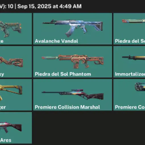 AP | 10 Skins | exp NO RANK | Piedra del Sol Phantom | Piedra del Sol Ghost | Piedra del Sol Judge | Avalanche Vandal | Piedra del Sol Bucky | S4G