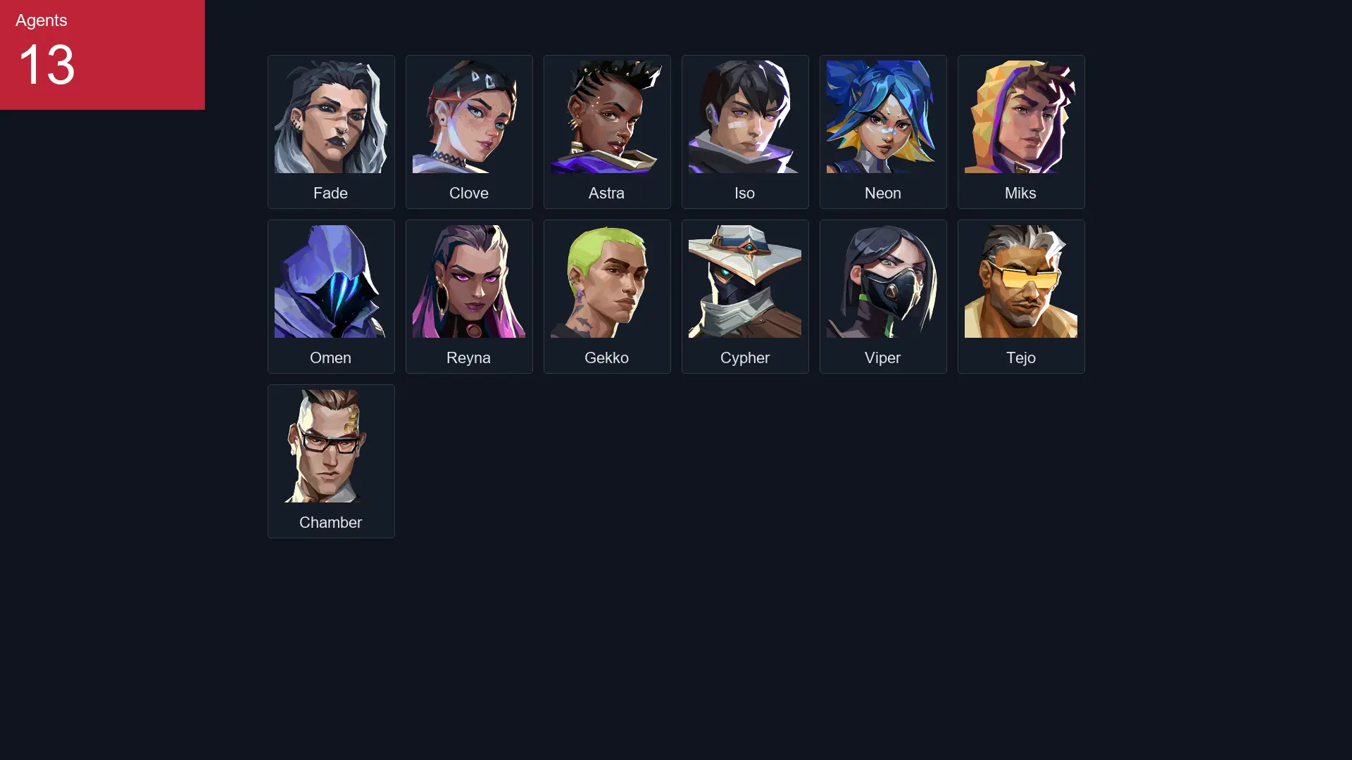 ⭐ EU 🌟 0 Skins 👑 13 Agents 🎪 Level 🔮 🌟 No asset found.