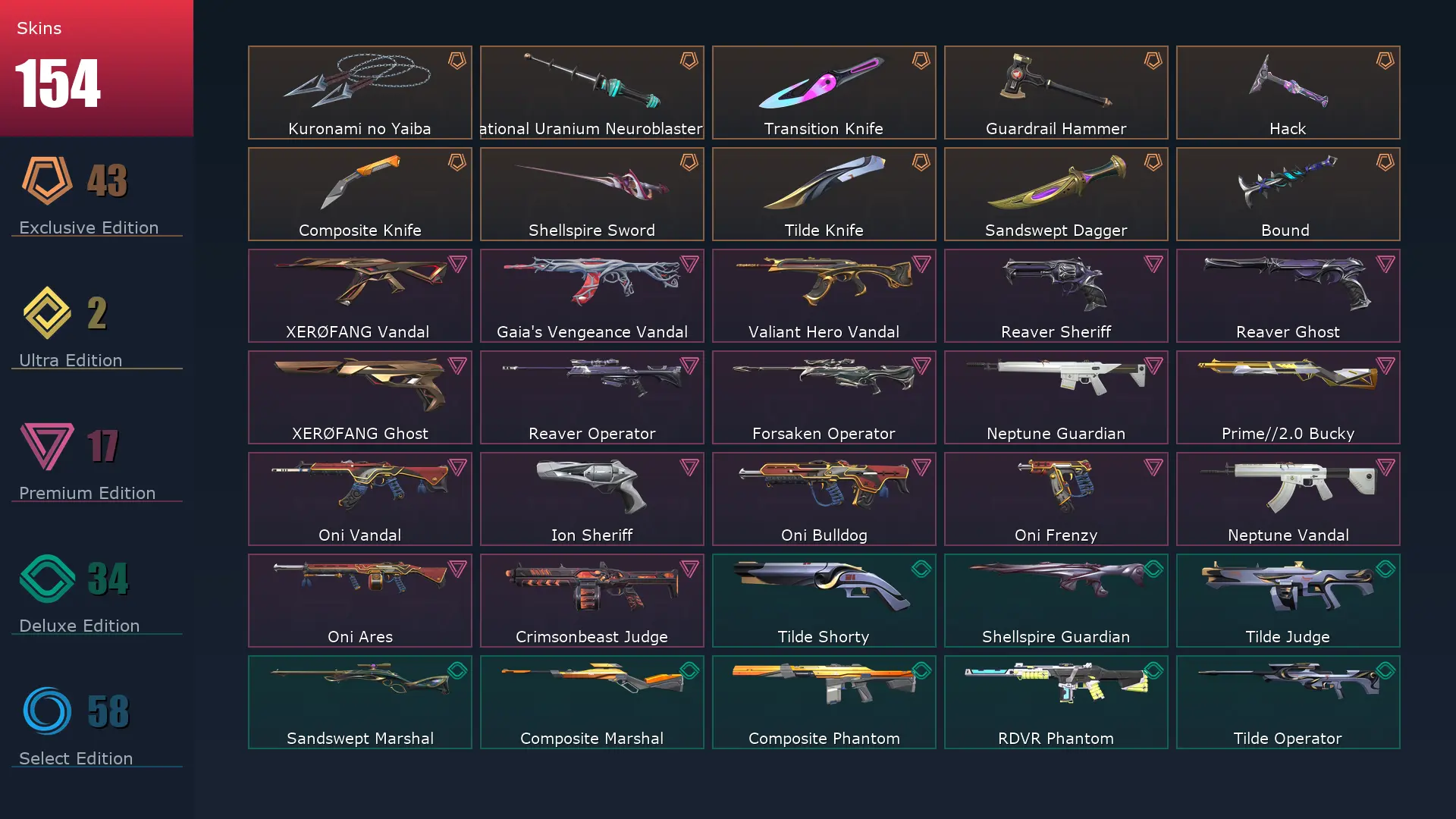 EU 📆 155 Skins 😍 28 Agents 🥅 255 Level ⛰ Champions 2025 Vandal ✏️ Champions 2023 Vandal 🛩 Champions 2023 Kunai 🎈 Champions 2025 Butterfly Knife 🤠 Ignite Fan 🛴 XERØFANG Ghost 🍌 Glitchpop Operator 🎸 Neo Frontier Phantom
