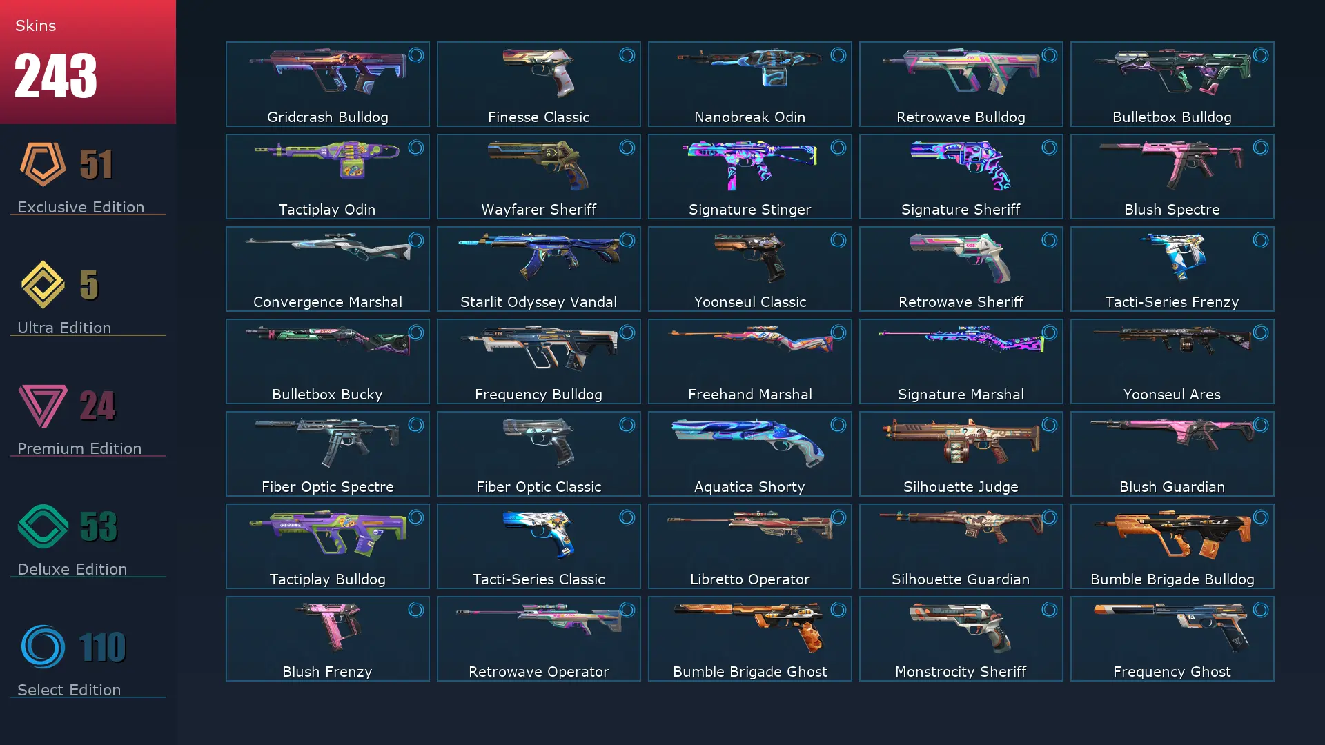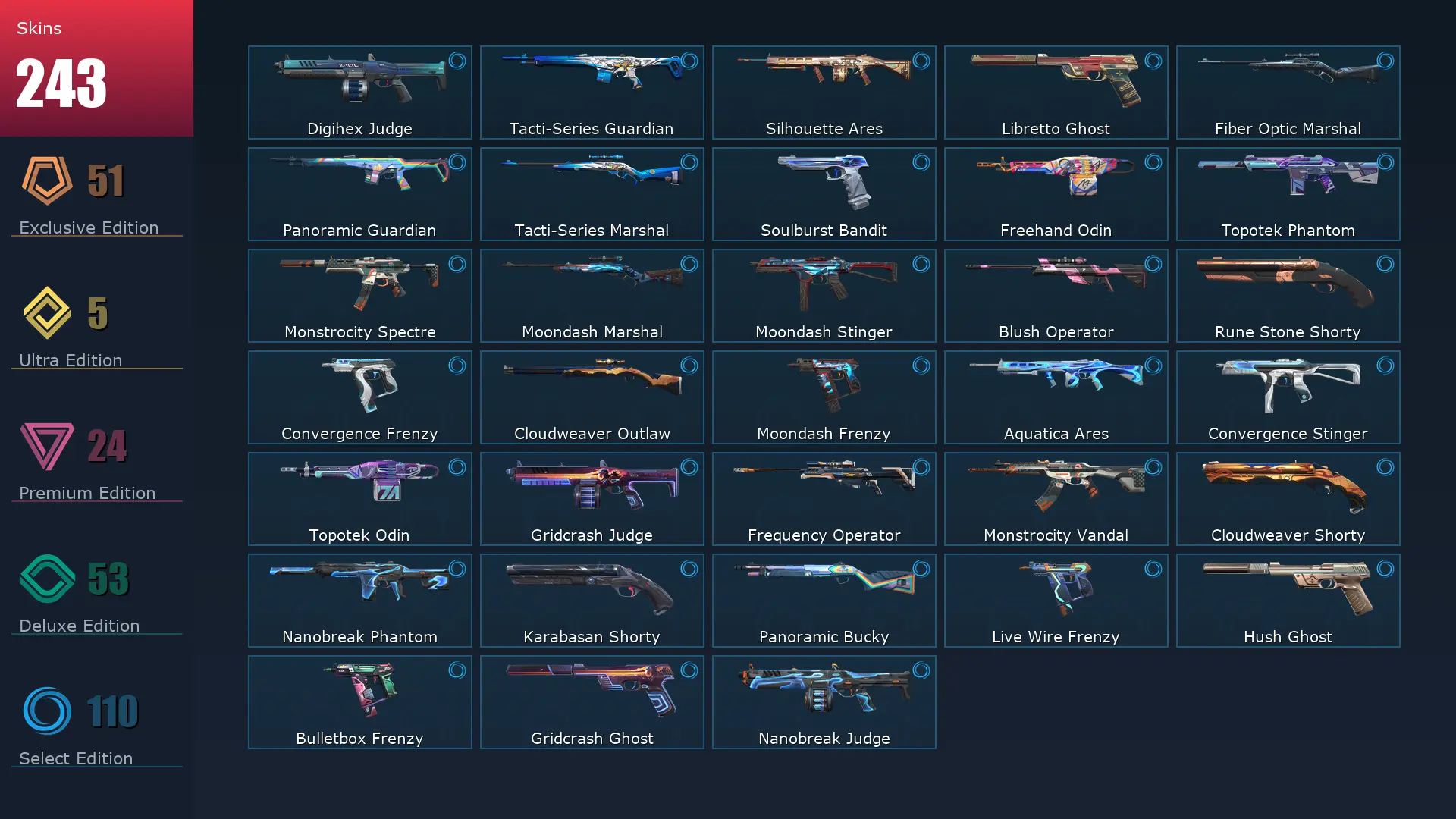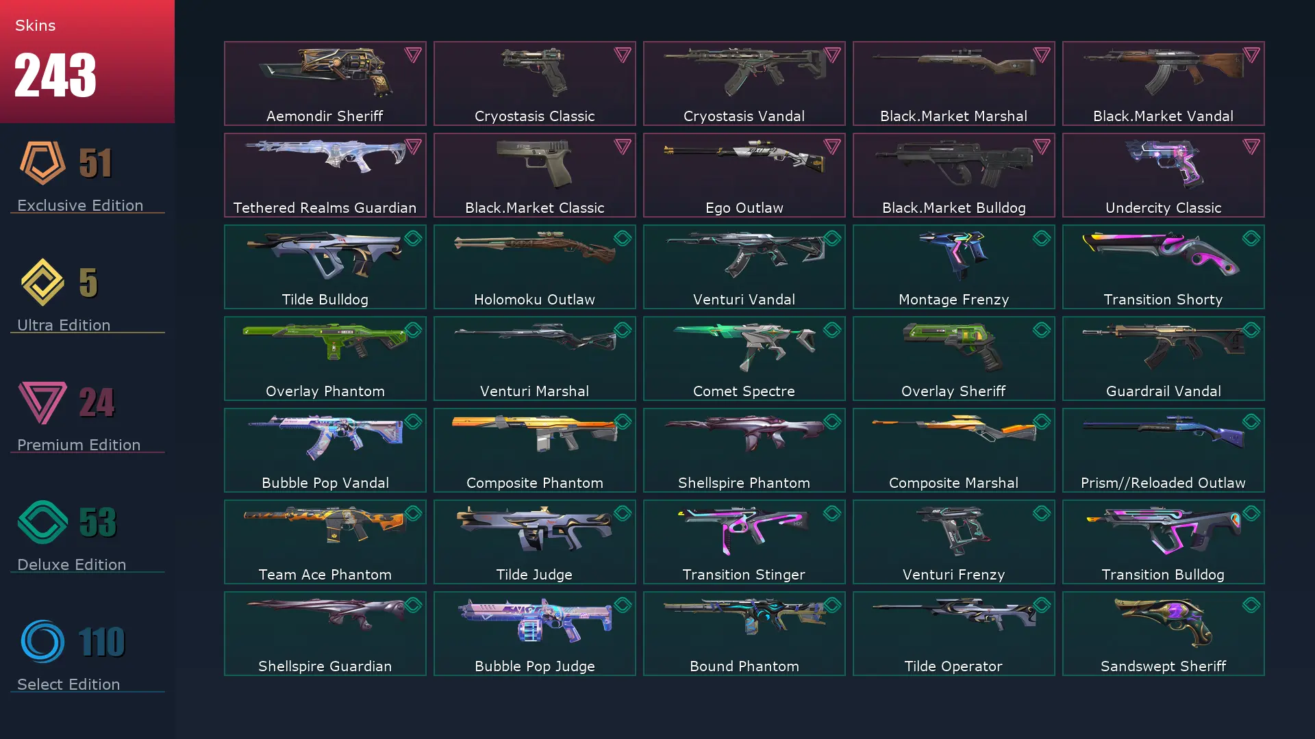 EU 🗒 244 Skins ⚡️ Gold 2 🪐 29 Agents 👕 406 Level 🤿 Arcane Vandal 🧹 Champions 2023 Vandal 🎿 Champions 2024 Phantom 🚵♀️ Ignite Fan 🐌 Champions 2024 Blade 🌭 Arcane Gauntlets 🍶 Champions 2023 Kunai 🎡 Reaver Guardian 🌜 XERØFANG Vandal