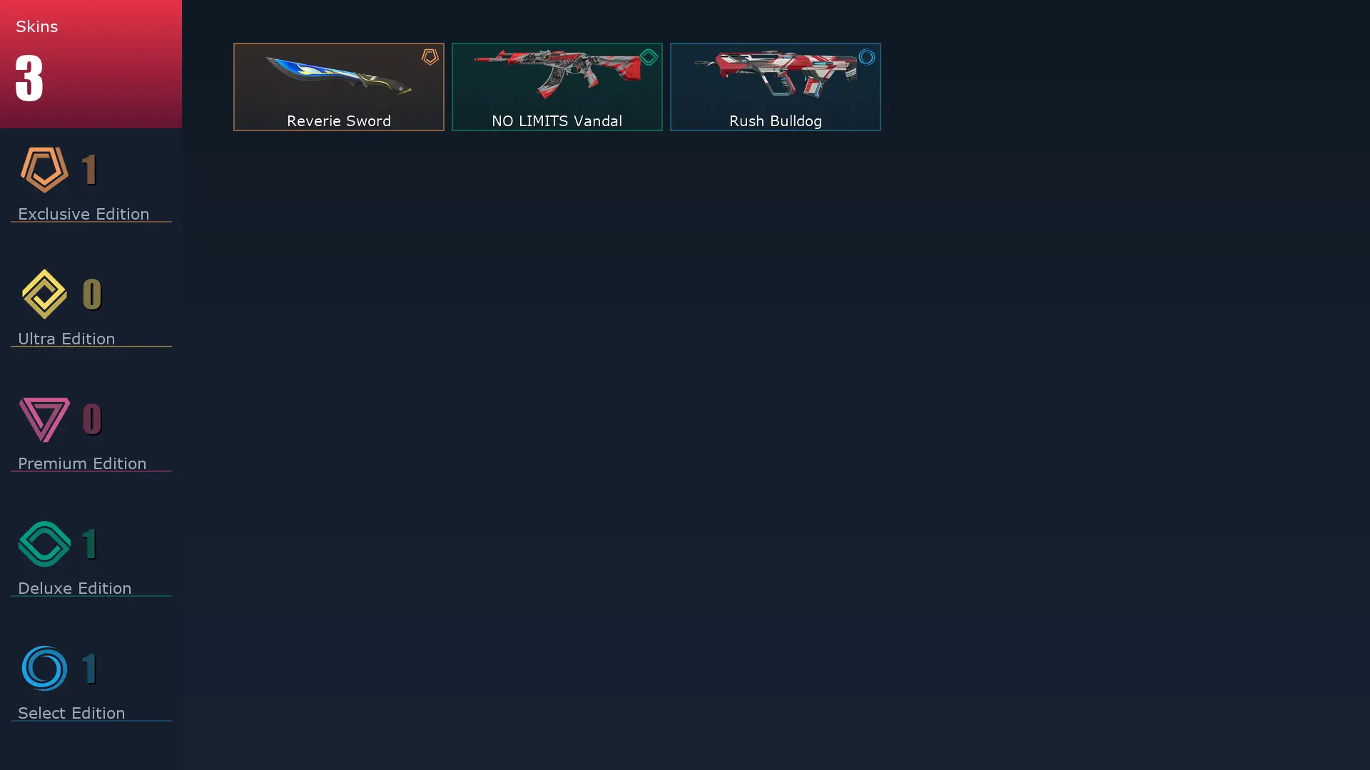 EU 🦿 3 Skins 🤤 8 Agents 🐻 28 Level ⌛️ Reverie Sword 🥕 Rush Bulldog 🚝 NO LIMITS Vandal