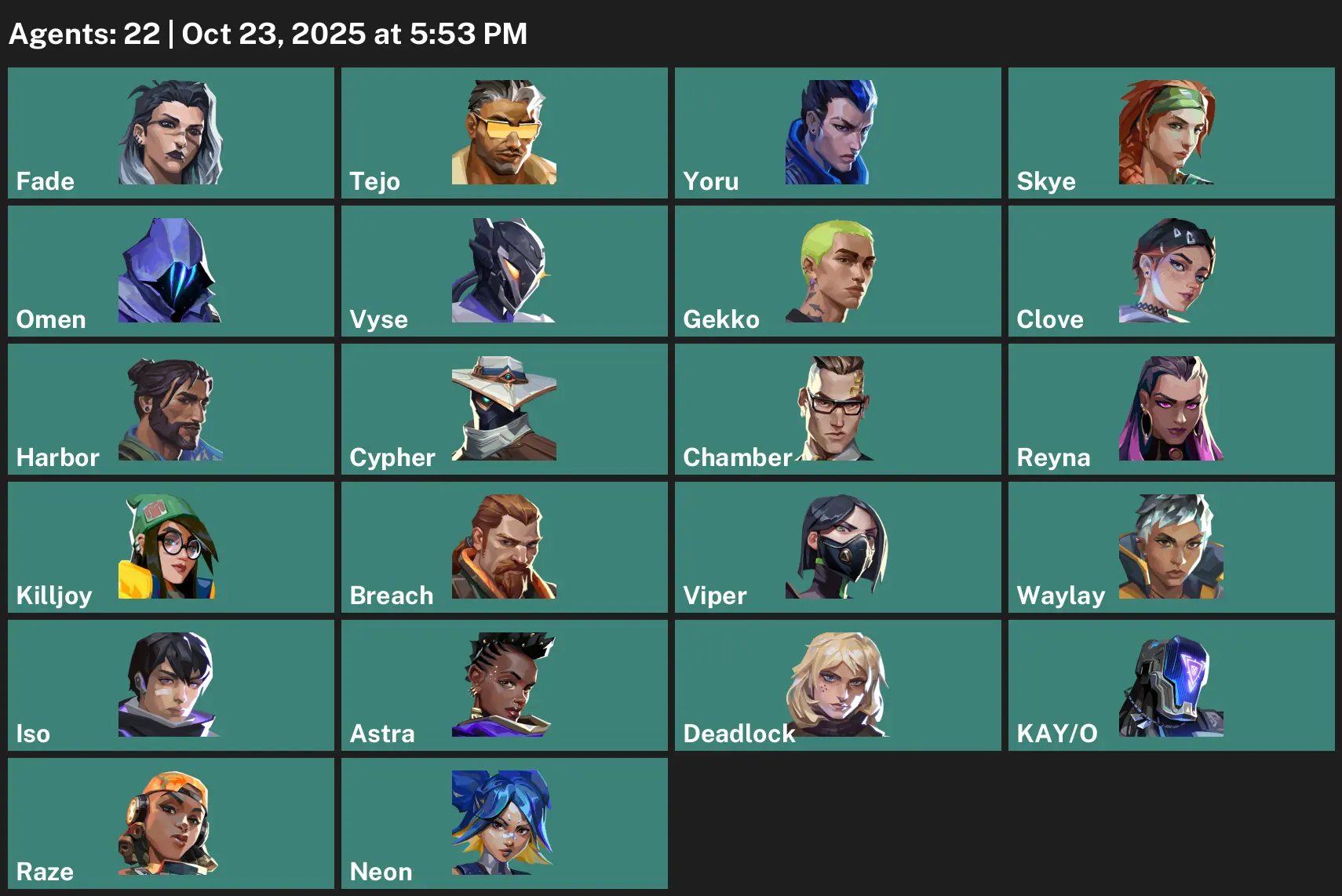 🌪 LA 💦 Ascendant 2 🤬 10 Skins 🥻 25 VP 📋 22 Agents 🤠 Value: 6125 VP 🦷 RGX 11z Pro Vandal 🌊 Prelude to Chaos Vandal 🤼♂️ Reaver Phantom 👇 Velocity Shorty 🦪 Hush Ghost 🎋 Immortalized Sheriff