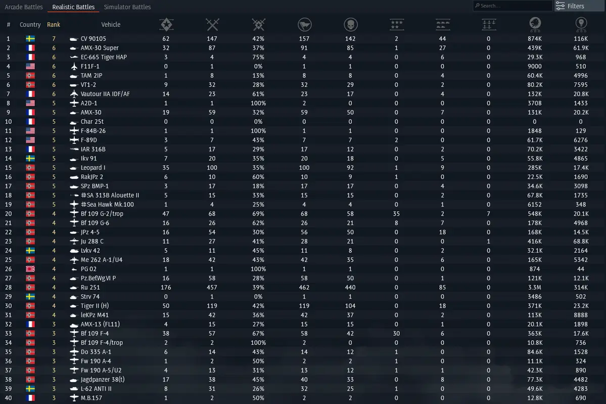 ✓VT1-2 ✓Maus ✓F11F-1 ✓AMX-30 ✓CV 90105 ✓EC-665 Tiger HAP ✓Pz․Bef․Wg․ VI P ✓AMX-30 Super ✓A2D-1 ✓TAM 2IP