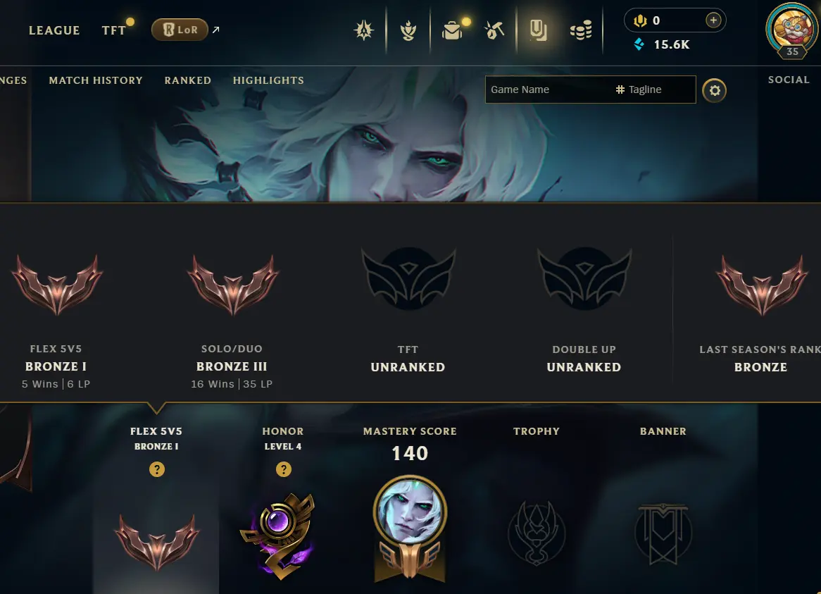 ๐ค BRONZE III NA | ๐งญ Lvl 35 | ๐ฐ 15.6K BE | ๐งโโ๏ธ 49 Champs | ๐