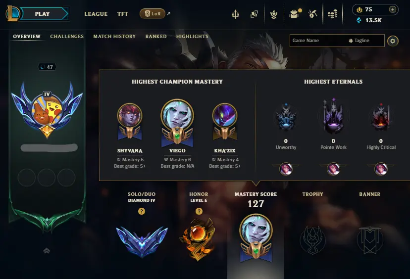DIAMOND 4 77%WR🔥+30LP Gains⭐Name Changeable✅Instant Full Ownership + Recovery Info Included