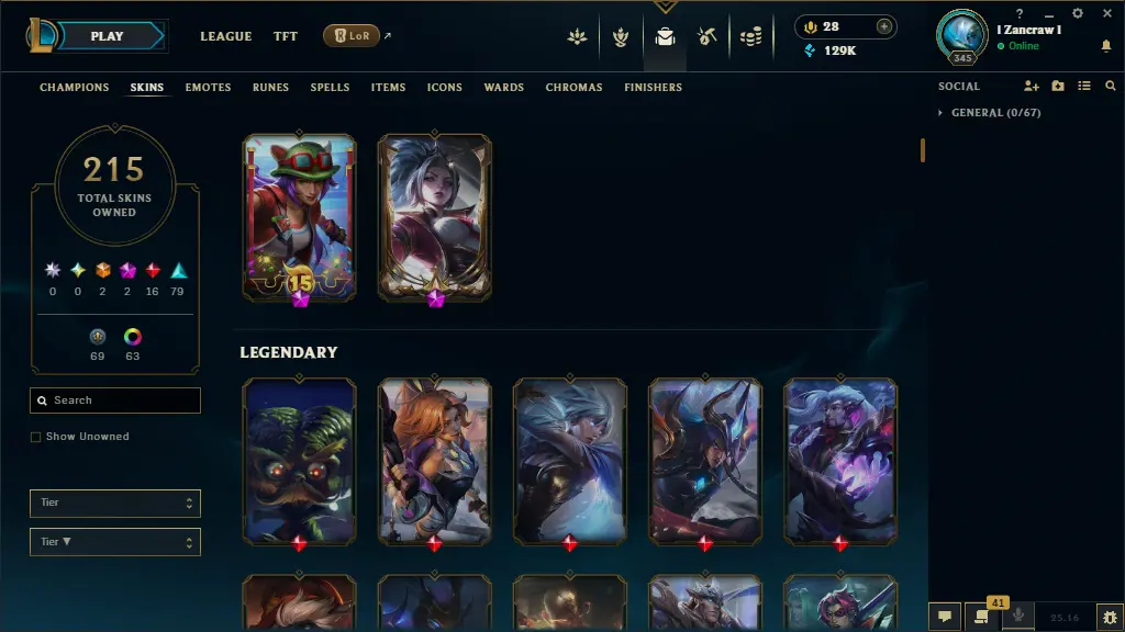 (P2 Last Season) โ 215 Skins ๐จ [129,921 BE ๐ | 28 RP ๐ฅ | 18 MESS โจ] โ Honor 3 ๐ โ 170 Champs โ๏ธ