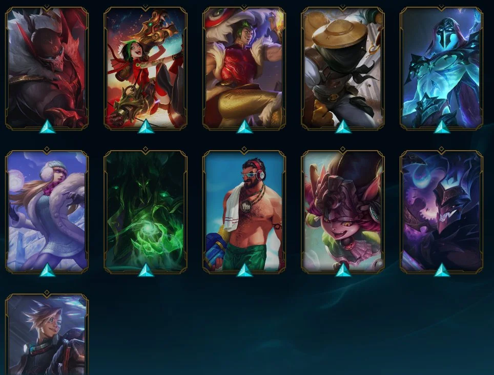 LOL13 //90 skins 164 champions 3125 BE Riot Kayle, SKT T1 Lee Sin, SKT T1 Vayne, Zombie Ryze, Hextech Galio
