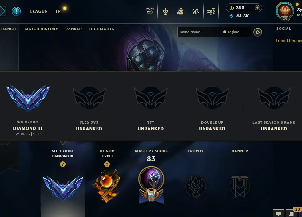 ⚡ 【 ME 】 ⸱ Diamond III 63.4% WR ⚡ | Hand ⸱ ( leveled + Boosted ✌️ ) | Unverified ✅ | 44604 BE 💵 | 350 RP 💰 | Untouched-Loot 🔒 |Check Description 🔰