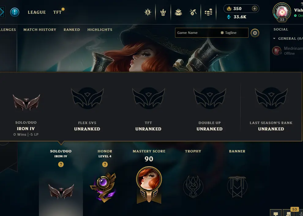 ⚡ 【 ME 】 ⸱ Iron IV 0% WR +37Games ⚡ | Hand ⸱ ( leveled + De-ranked ✌️ ) | Unverified ✅ | 33659 BE 💵 | 350 RP 💰 | Untouched-Loot 🔒 | Check Description 🔰