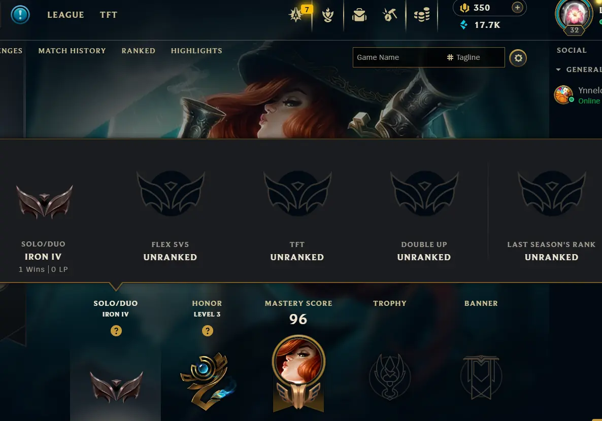 ⚡ 【 ME】 ⸱ Iron IV 2.9% WR 28 GAME ⚡ | Hand ⸱ ( leveled + De-ranked ✌️ ) | Unverified ✅ | 17754 BE 💵 | 350 RP 💰 | Untouched-Loot 🔒 | Check Description 🔰