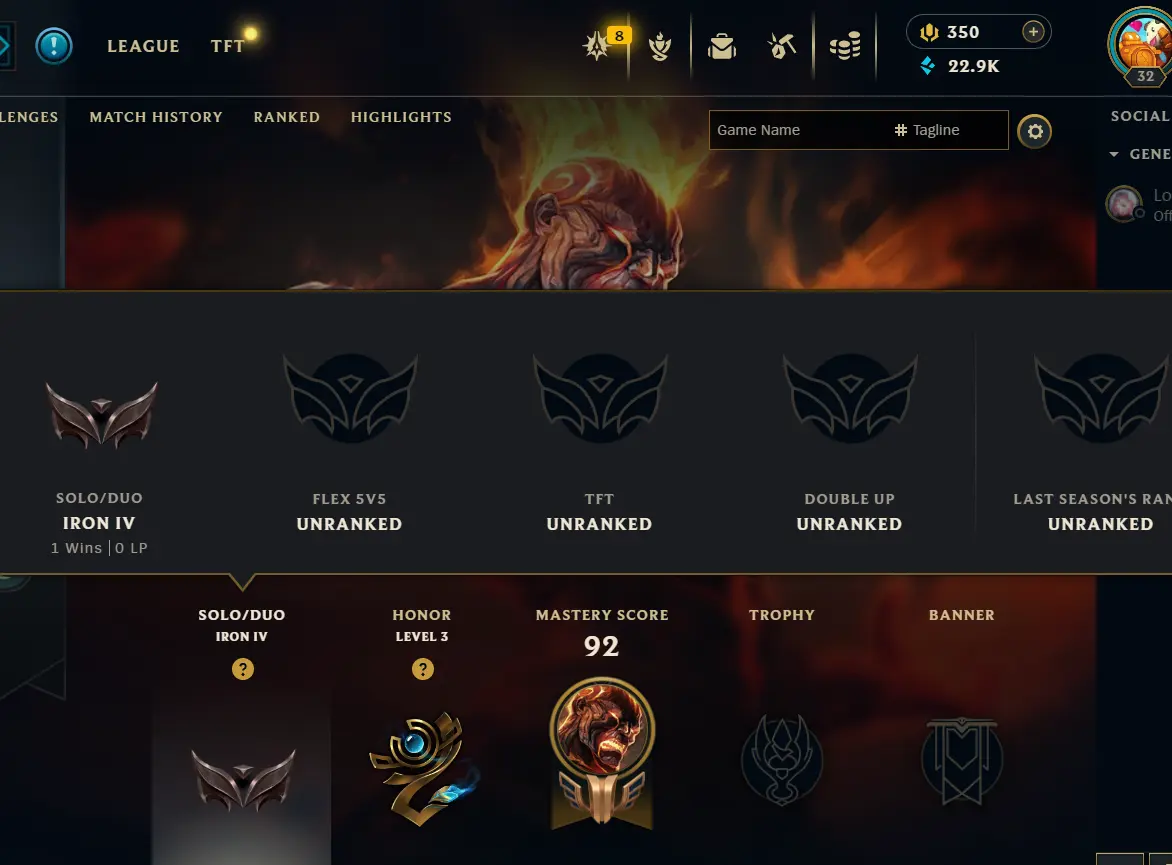 ⚡ 【 ME 】 ⸱ Iron IV 2.9% WR 28 GAMES⚡ | Hand ⸱ ( leveled + De-ranked ✌️ ) | Unverified ✅ | 22944 BE 💵 | 350 RP 💰 | Untouched-Loot 🔒 | Check Description 🔰