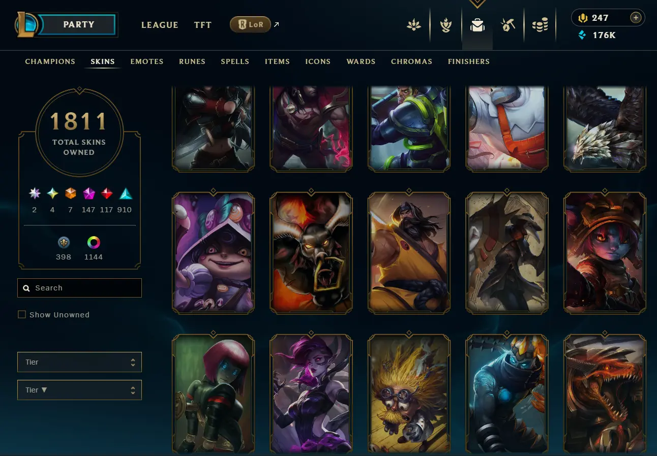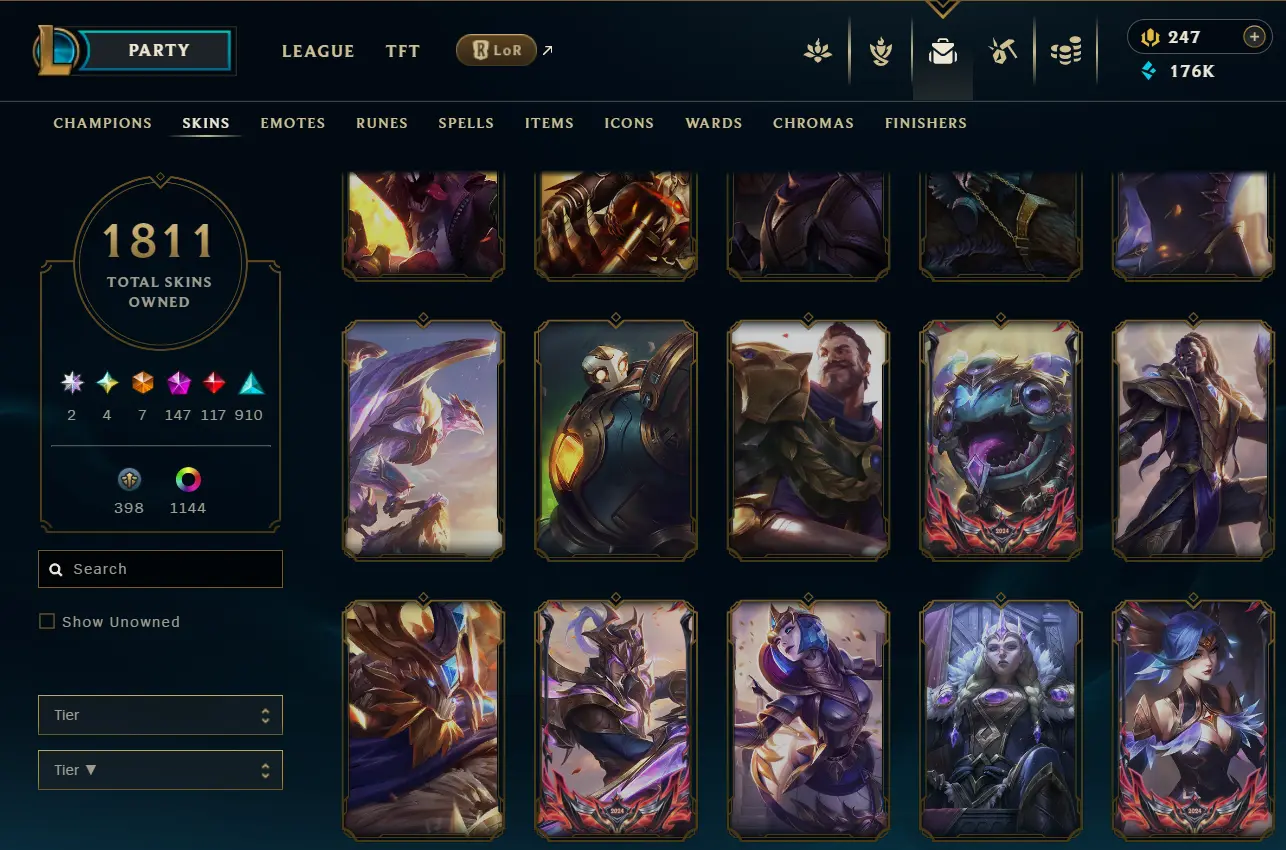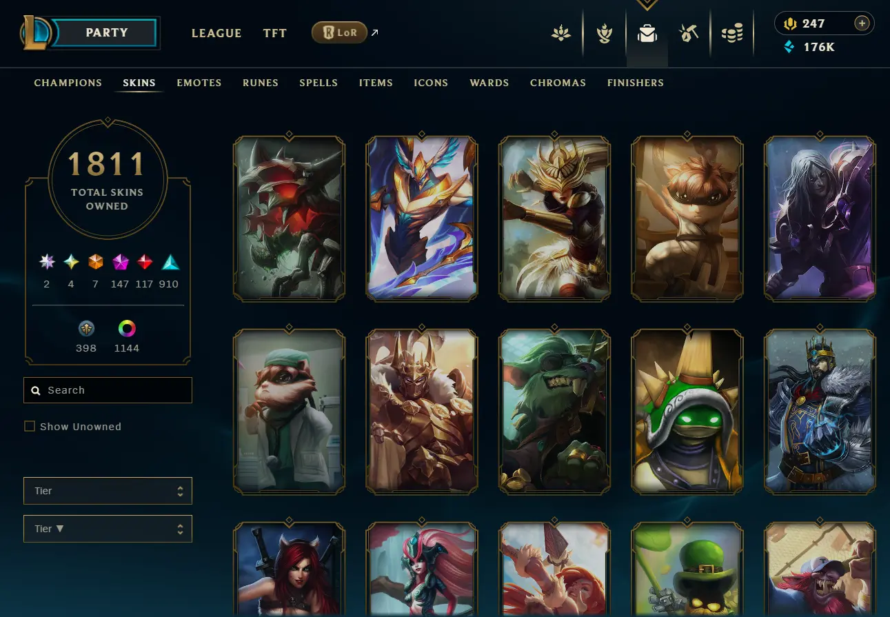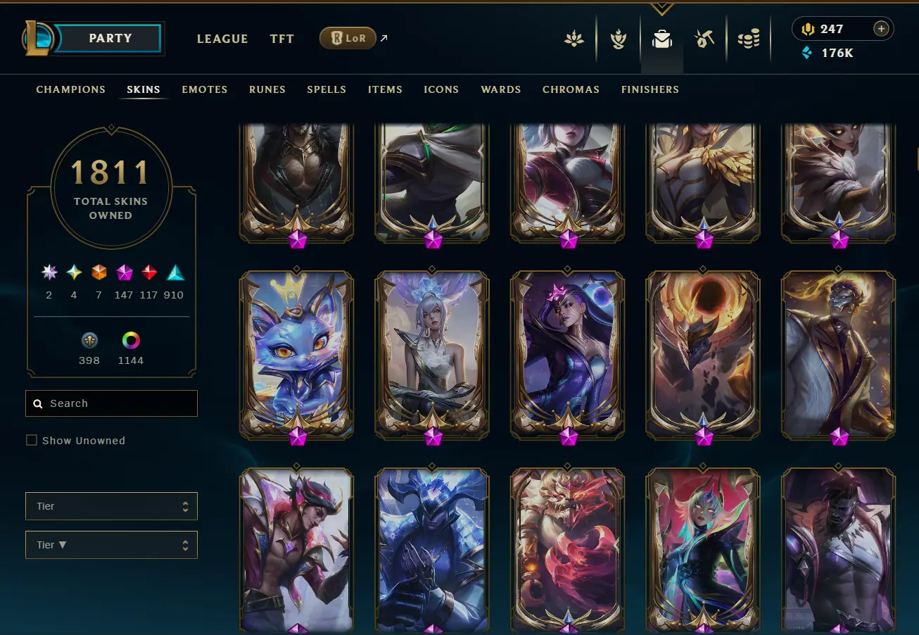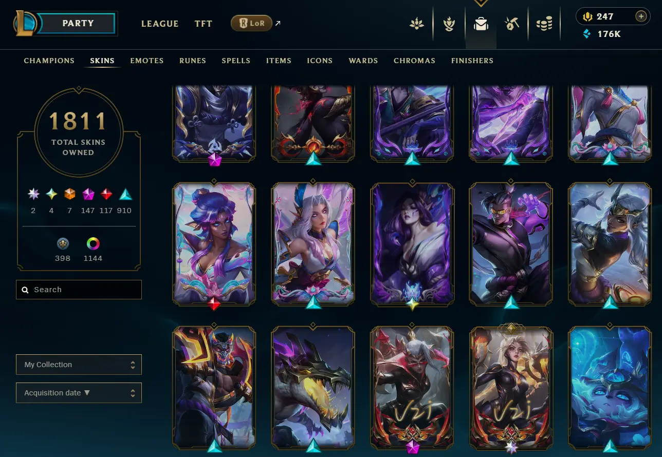 [NA] 1811 Skins~Immortalized Legend Ahri&Kai'Sa + All Pax + All Gacha + 4 Exalted Skins + King Rammus + Black Alistar +Tft (check screenshots) +70% Tft Loot