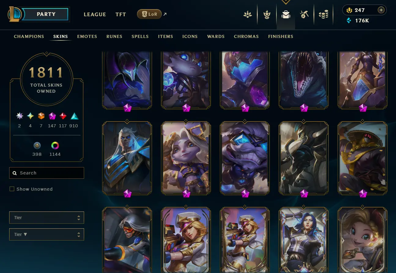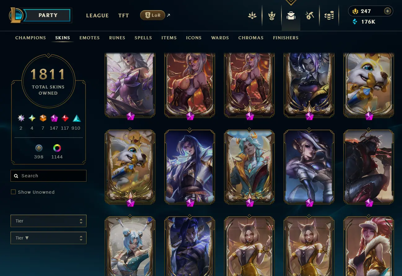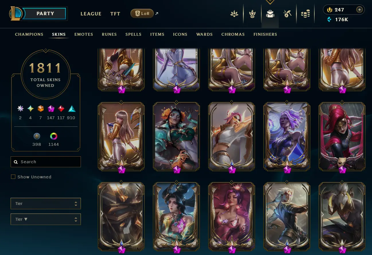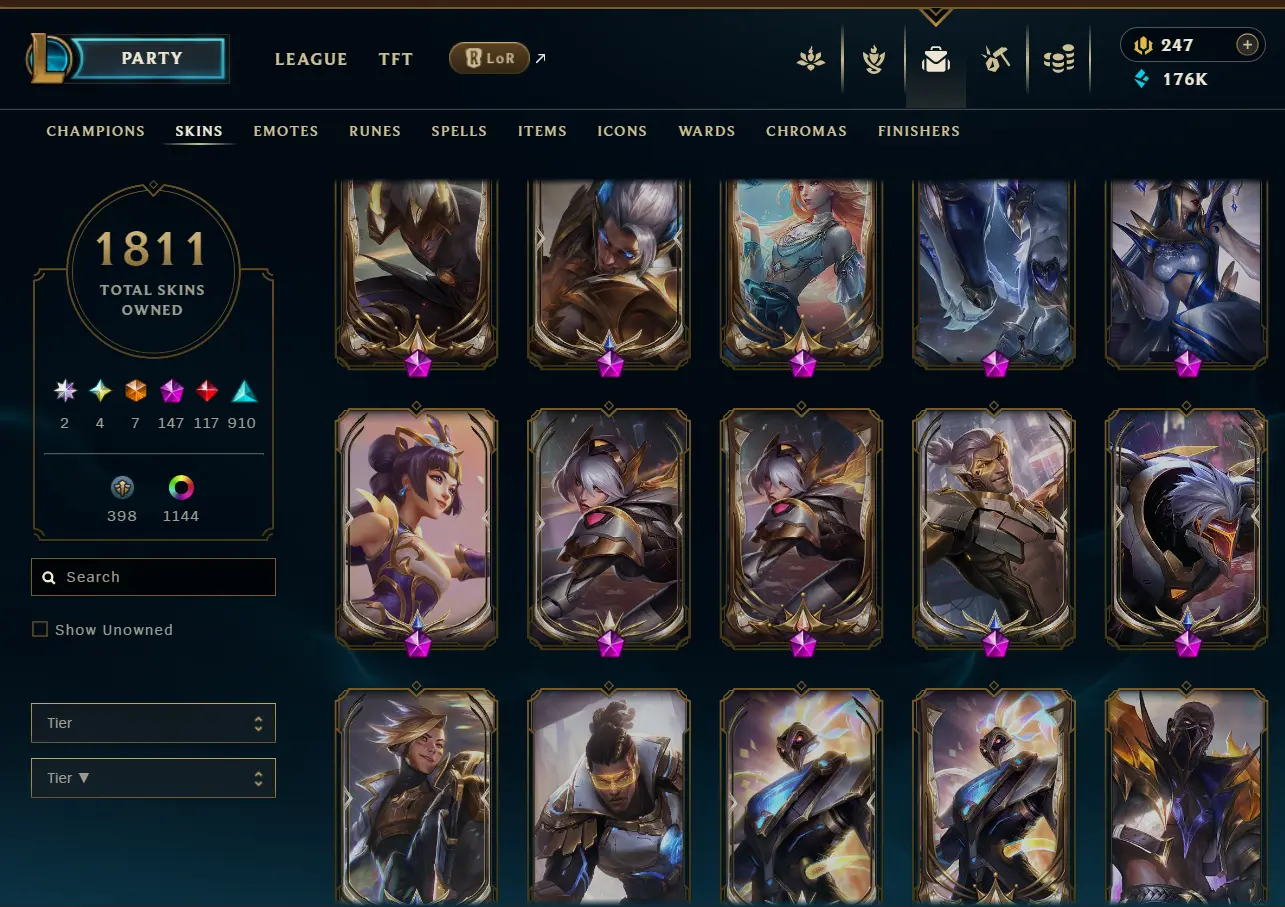 [NA] 1811 Skins~Immortalized Legend Ahri&Kai'Sa + All Pax + All Gacha + 4 Exalted Skins + King Rammus + Black Alistar +Tft (check screenshots) +70% Tft Loot