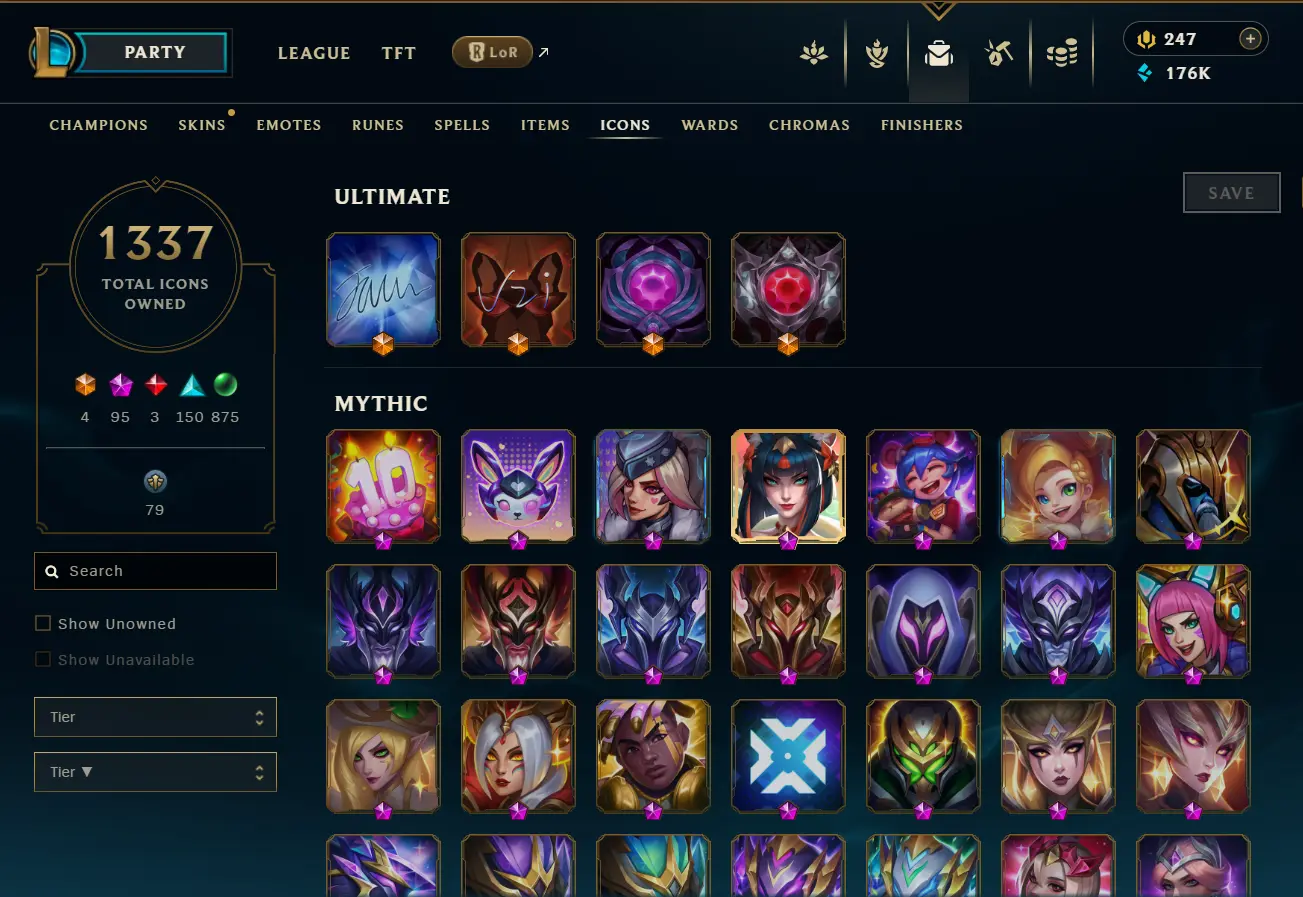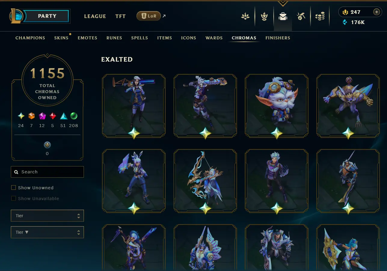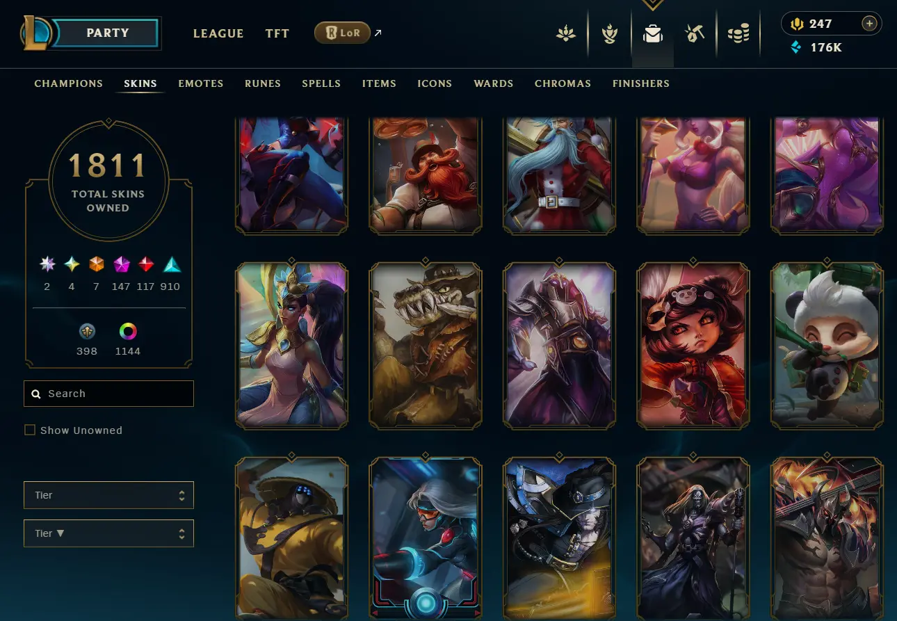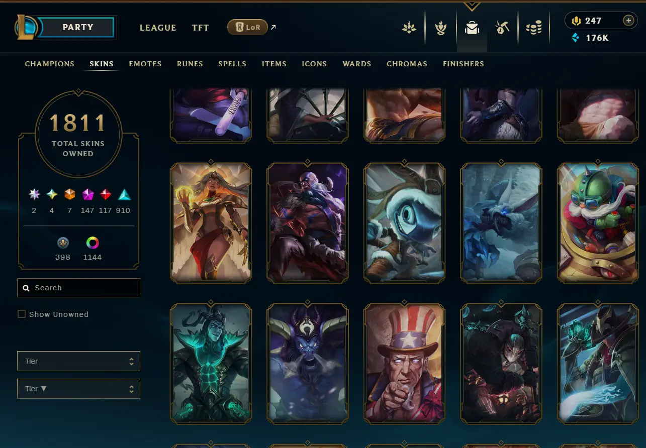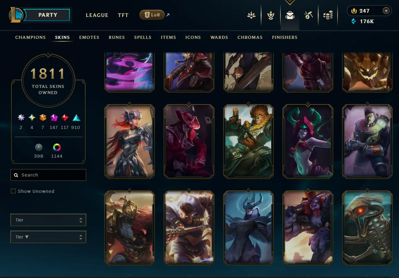 [NA] 1811 Skins~Immortalized Legend Ahri&Kai'Sa + All Pax + All Gacha + 4 Exalted Skins + King Rammus + Black Alistar +Tft (check screenshots) +70% Tft Loot