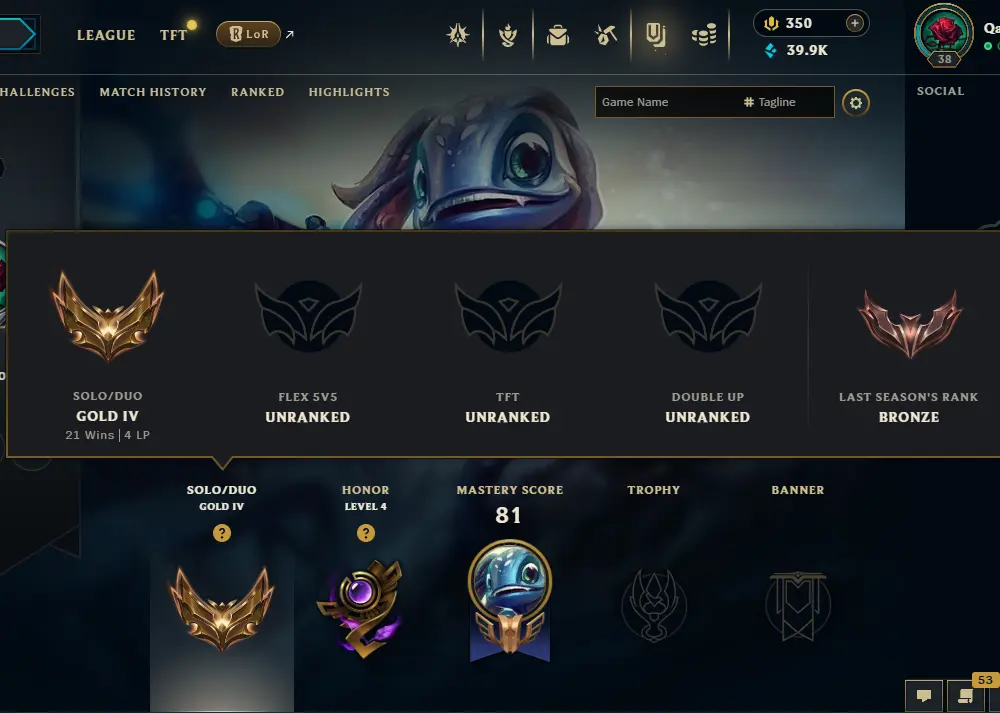 ⚡ 【 NA 】 ⸱ Gold IV 50% WR ⚡ | Hand ⸱ ( leveled + De-ranked ✌️ ) | Unverified ✅ | 39950 BE 💵 | 350 RP 💰 | Untouched-Loot 🔒 | Check Description 🔰