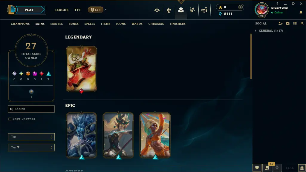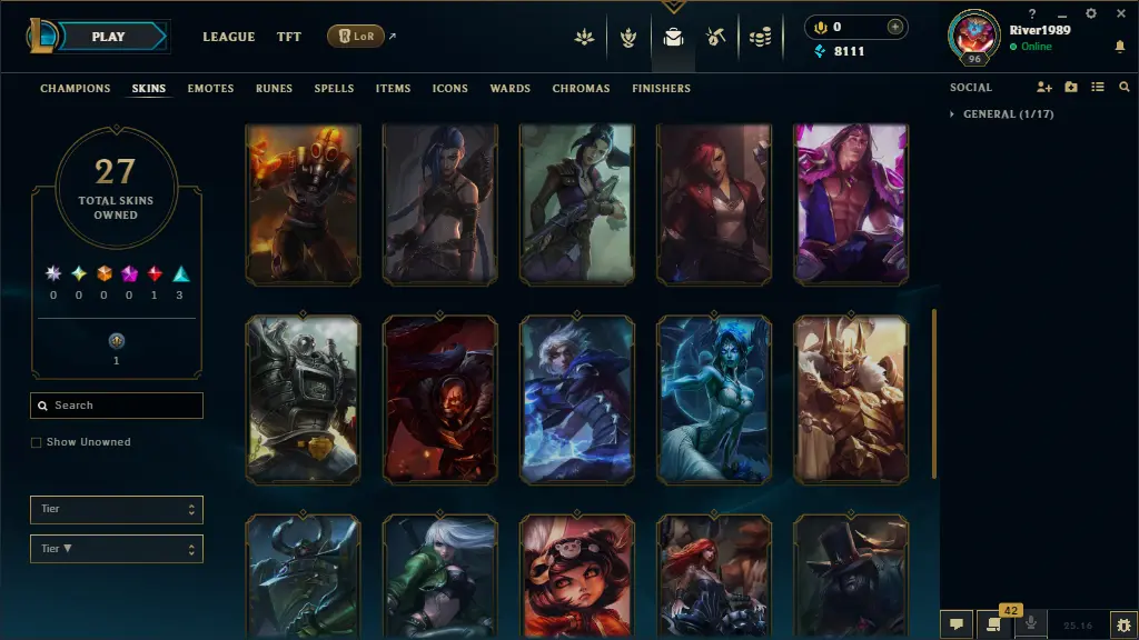 โ 27 Skins ๐จ [8,111 BE ๐ | 0 RP ๐ฅ] โ Honor 3 ๐ โ 81 Champs โ๏ธ
