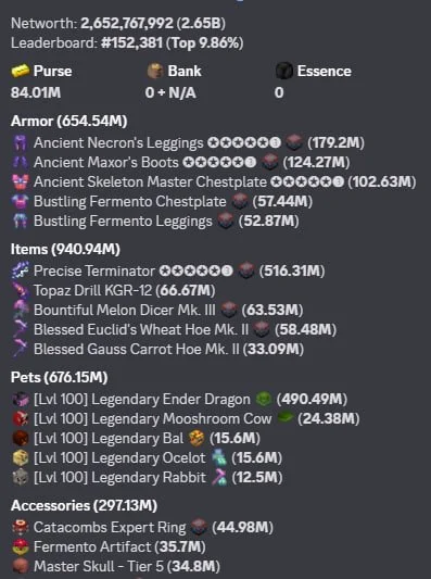 🔷 HYPIXEL SKYBLOCK PROFILE 🔷 💰 NETWORTH: 2.65B 💰 ⚡️ BEST PRICE / FAST DEAL ⚡️