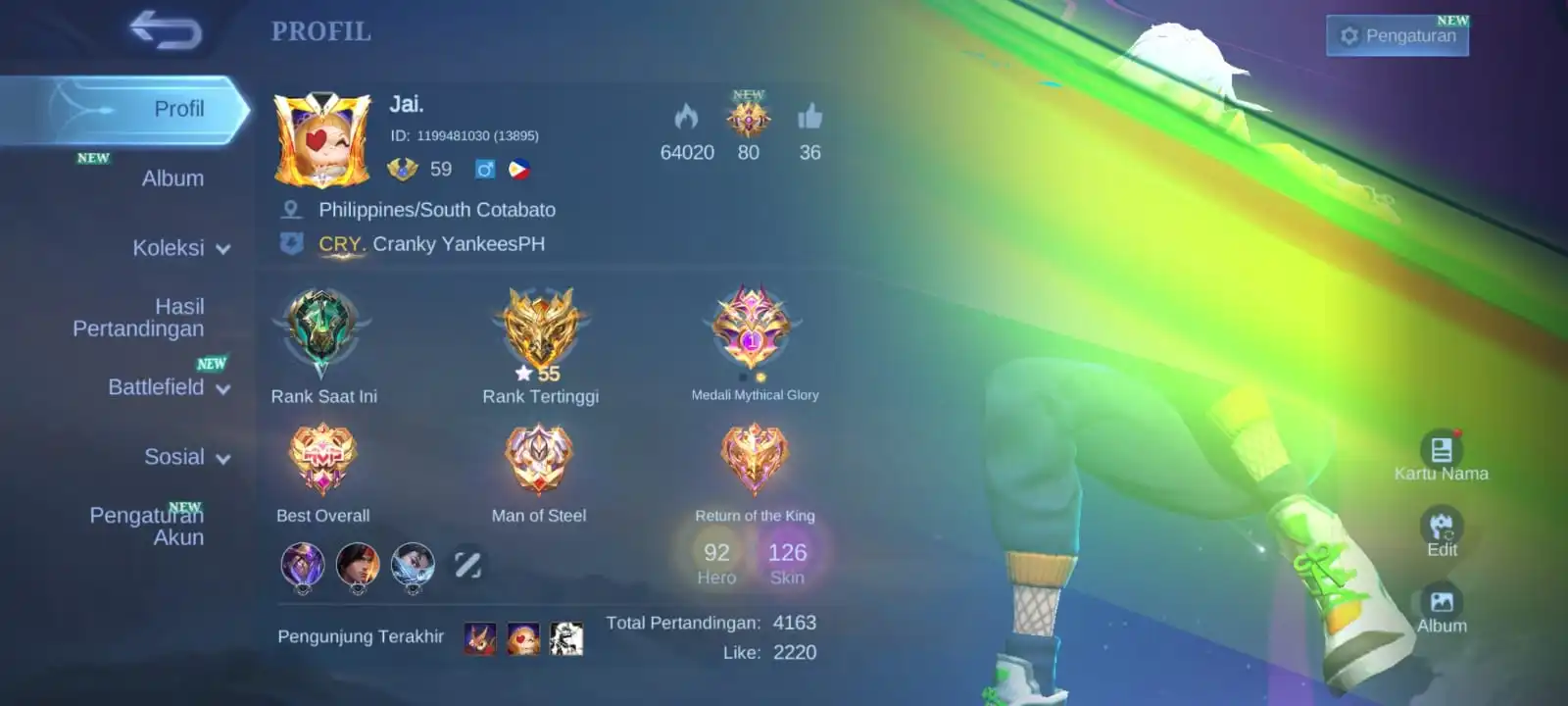 #EL 3915🔥MOBILE LEGEND🔥EMBLEM ALL MAX🍀9 EPIC🍀1 LUCKY BOX🍀1 MYTH🍀RANK:EPIC🍀HERO 92🍀SKIN 126(SAFE ACCOUNT)