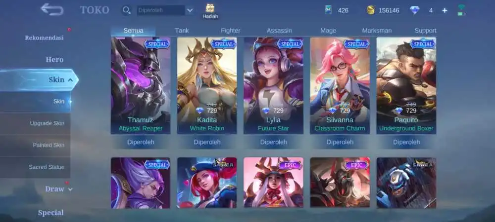 #EL 3919✓MOBILE LEGEND✓EMBLEM ALL MAX✓3 SABER ✓12 EPIC✓3 LIGHTBORN✓RANK:EPIC✓HERO 115✓SKIN 215(SAFE ACCOUNT)