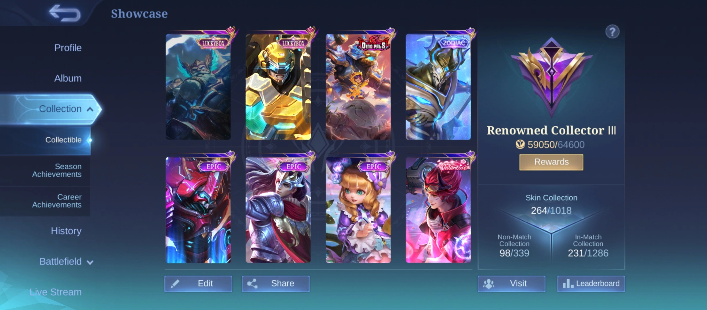 GG833|Lvl 107|RENOWNED CC 3|ALL EMBLEM MAX|264 SKIN|130 HEROES MAX|EX IMMORTAL 109|2 LUCKYBOX(FRANCO,JOHNSON)|ZHASK ZODIAC|BADANG SAINTSEIYA